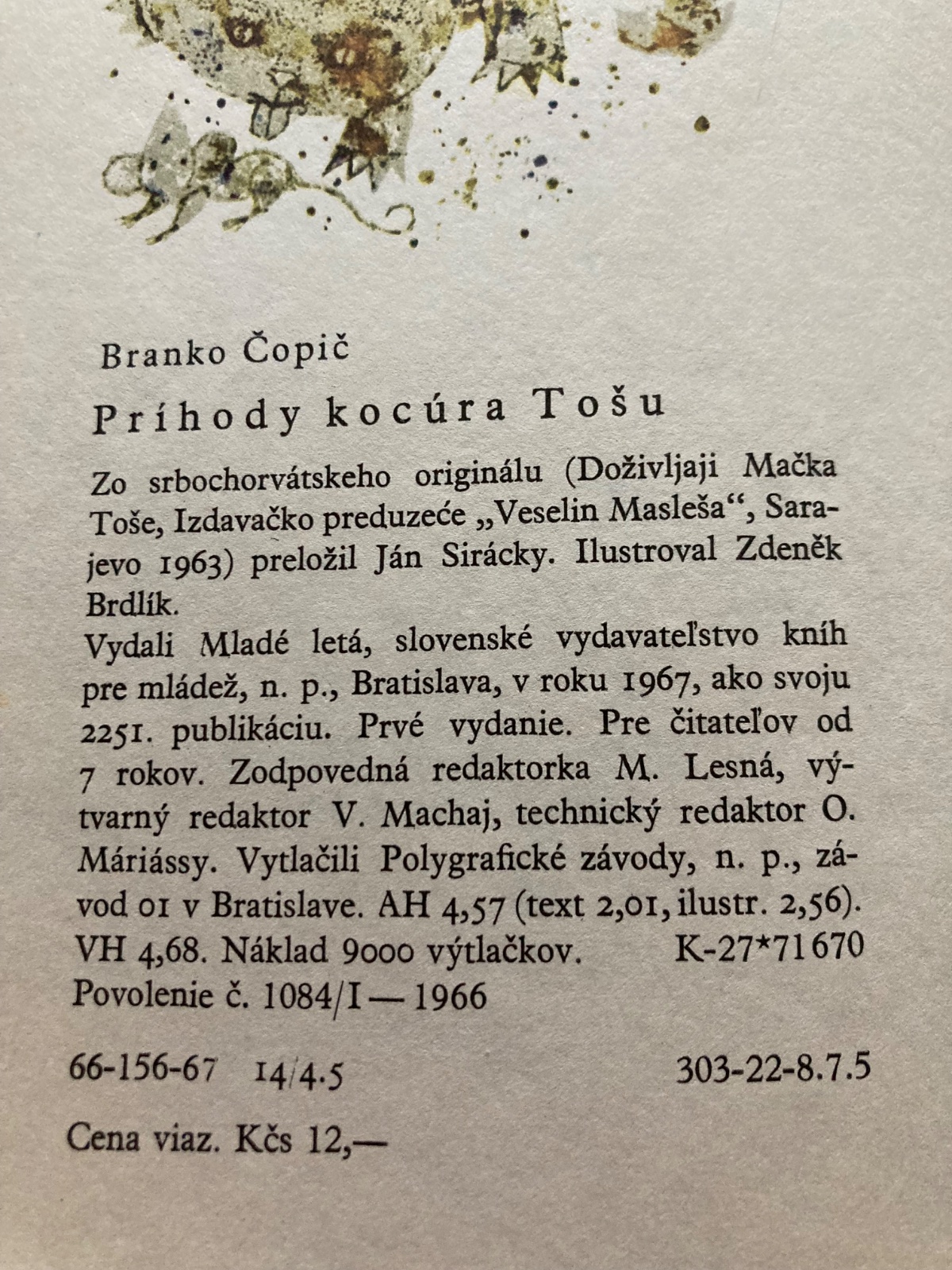 🔹Kniha Príhody kocúra Tošu (v origináli Doživljaji mačka Toše) je známe dielo juhoslovanského (srbského) spisovateľa Branka Ćopića.