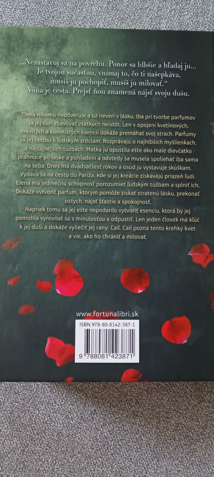 Román talianskej autorky Cristiny Caboniovej je nezabudnuteľný príbeh o jazvách minulosti, ktoré môže zahojiť iba skutočná a hlboká láska. Autorka pri písaní románu čerpala z vlastnej skúsenosti. Žije na vidieku obklopená rôznymi rastlinami a kvetmi a je včelárka, čo vníma skôr ako štýl života, nielen ako remeslo. Jej svet je plný vôní. Pochopila, že vôňa je krehký a bezprostredný spôsob komunikácie, jazyk na vyjadrenie emócií. Je presvedčená, že dnešná spoločnosť hľadí iba na formu bez ohľadu na jej obsah. „Najkrajšie, čo sa človeku môže prihodiť, je byť sám sebou. Nájsť sa, spoznať sa a prijať sa, je dobrý začiatok pre šťastný život,“ hovorí autorka.