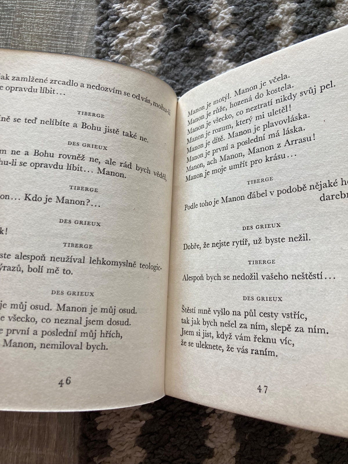 🎀 Manon Lescaut je veršovaná hra o sedmi obrazech, jíž byl předlohou román Abbé Prévosta. Premiéru měla v dubnu 1940 v divadle D 40, načež byla vydána knižně a okamžitě se stala bestsellerem. V anketě „Nejčtenější kniha roku 1940“ suverénně zvítězila. Objevily se desítky nových vydání a kdyby mohla být volně prodejná, strhala byvšechny nakladatelské rekordy. Po skončení okupace však zájem neustal a během deseti let od prvního vydání kniha vyšlo celkem kolem sta tisíc výtisků, což je na veršovanou hru skutečně neobyčejný úkaz i ve světovém měřítku.