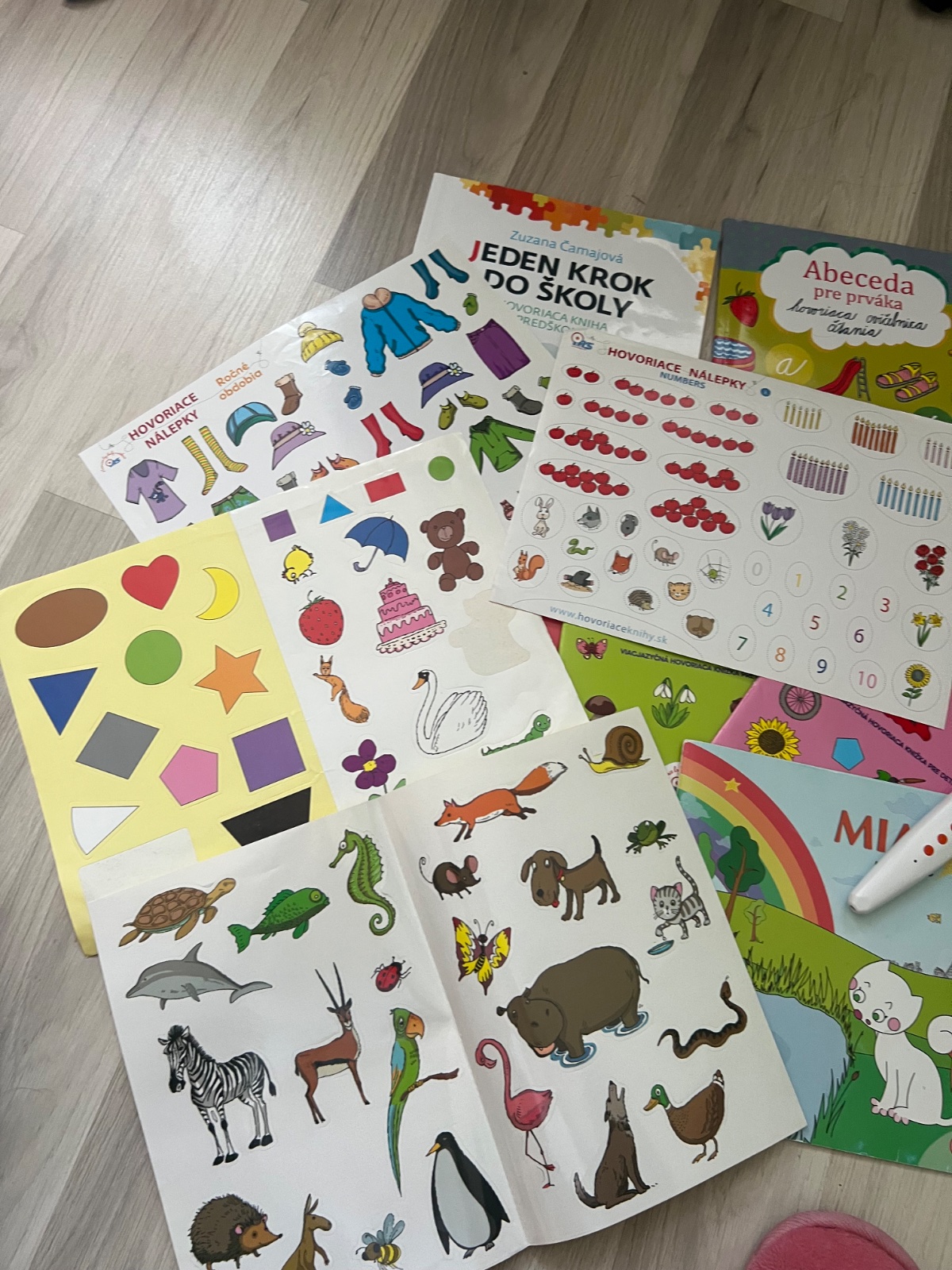 Hovoriace knihy v slovenskom, anglickom a nemeckom jazyku.Spolu s interaktívnymi nálepkami. Hovoriace pero sa nabíja cez USB kábel. Kniha Hravo a zdravo ma natrhnutý obal.