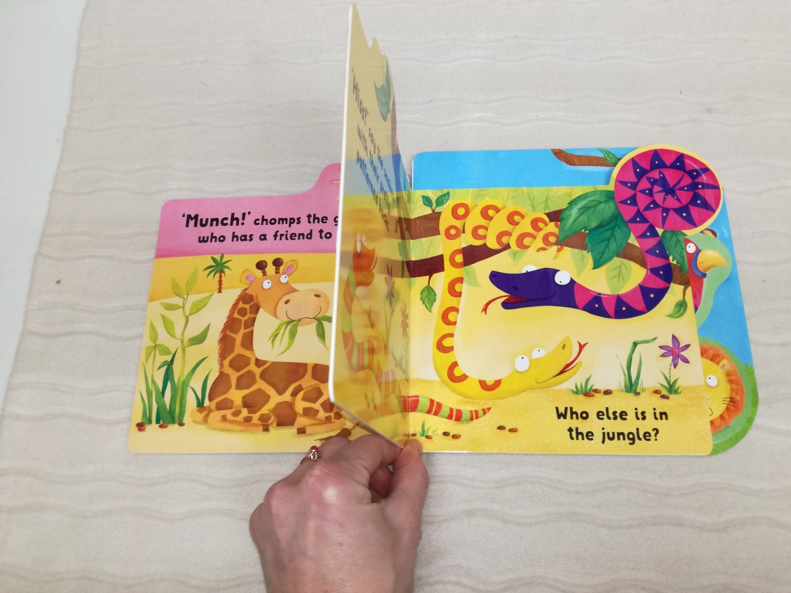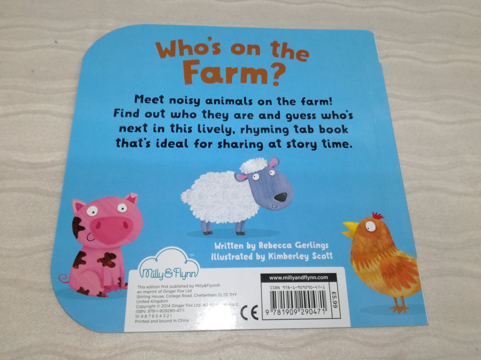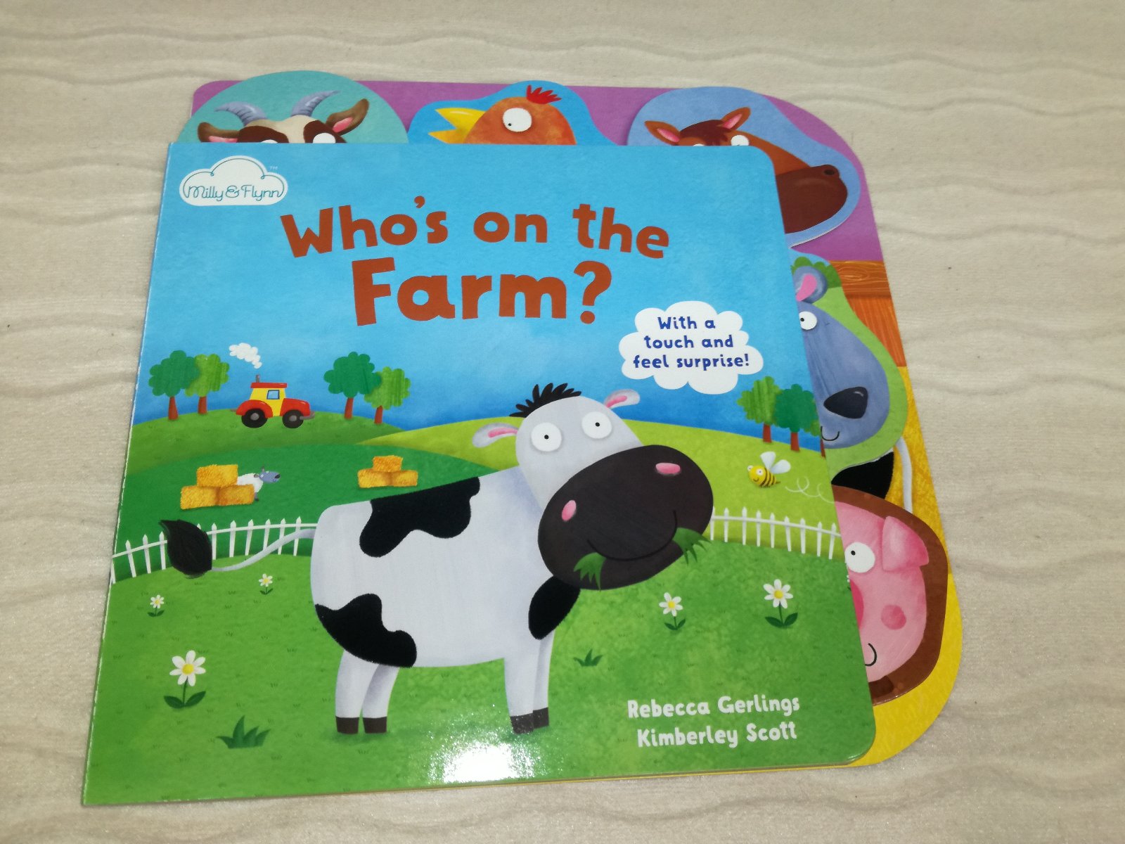 Milly & Flynn - Sensory Books series - tvarovane leporela, uvodna strana + posledna dvojstranka su dotykove / chlpatkove.