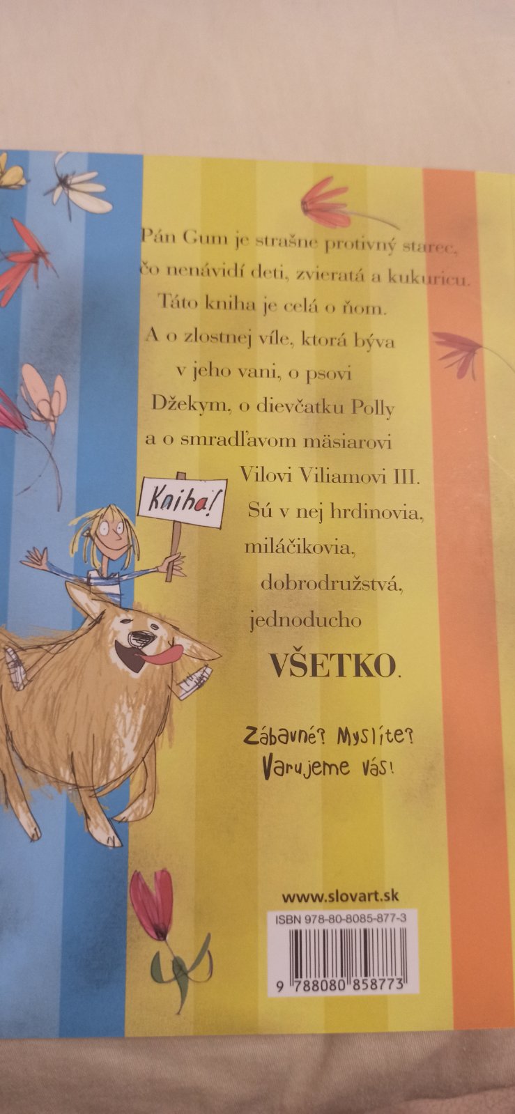 Pán Gum je strašne protivný starec. Najradšej by sa celý deň váľal v posteli a nič nerobil, lenže... v jeho vani býva zlostná víla, a keď pán Gum nemá záhradu v dokonalom poriadku, raz dva ho strieska panvicou. Pán Gum neznáša deti ani zvieratá, lenže... práve jeho záhradu si obľúbil velikánsky pes a každý deň mu ju obráti hore nohami...