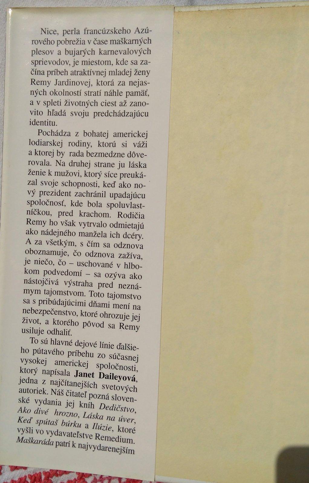 Maškaráda , Janet Dailey , Remedium , 1999 , tvrdá väzba 288 strán - 3,30 € - 390 g - V knihe je meno