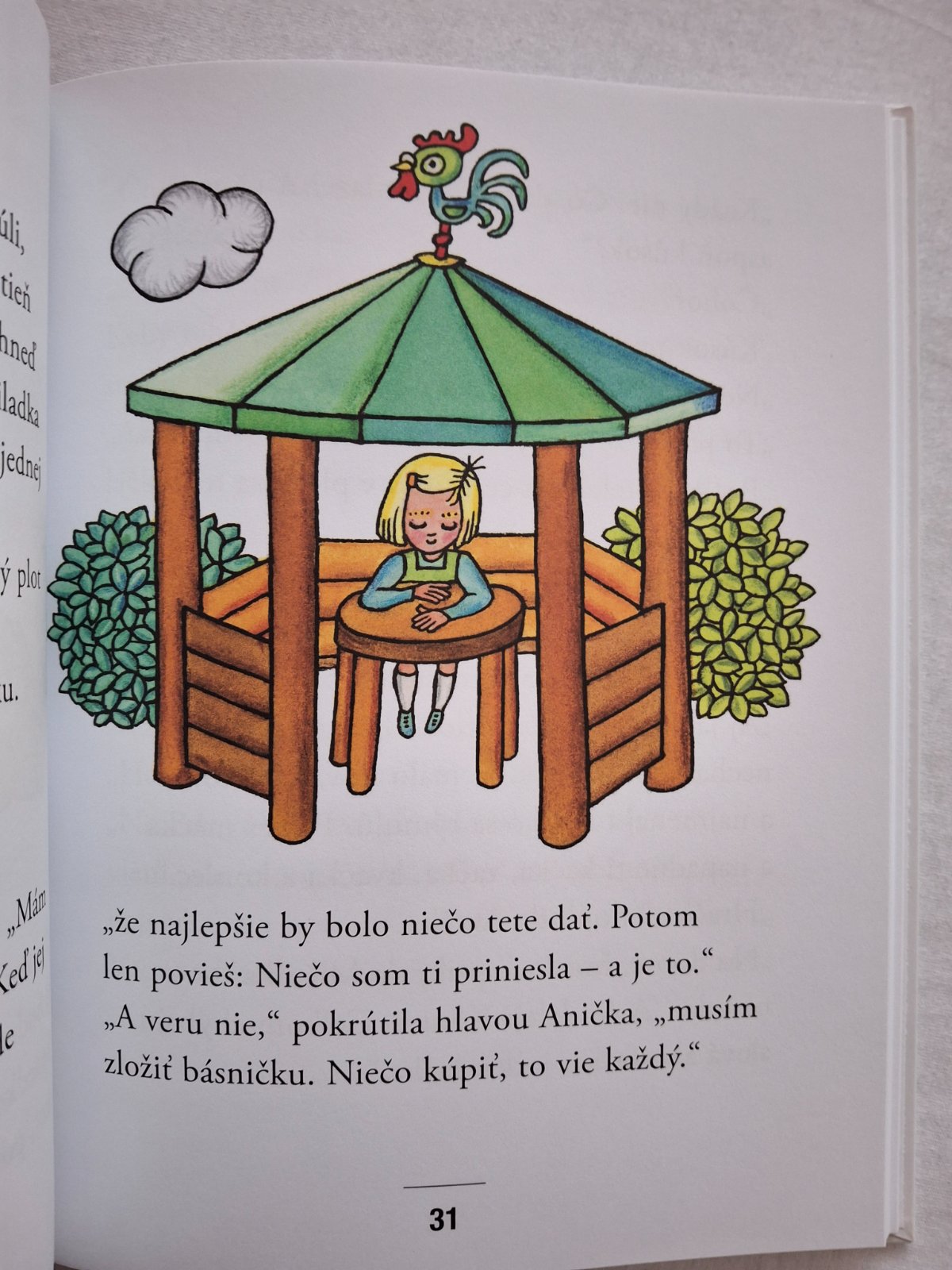 Malá Anička má starosti. Jej teta bude oslavovať narodeniny a Anička pre ňu nemá darček. Rozhodne sa, že pre ňu vymyslí básničku. Vymyslieť básničku ale nie je ľahké a oslava sa blíži. Ešteže má zázračnú mačku Zlatušku, ktorá má v zásobe veľa mačacích básničiek. Príbeh pre najmenšie deti je bohato ilustrovaný farebnými, vtipnými obrázkami Heleny Zmatlíkovej.