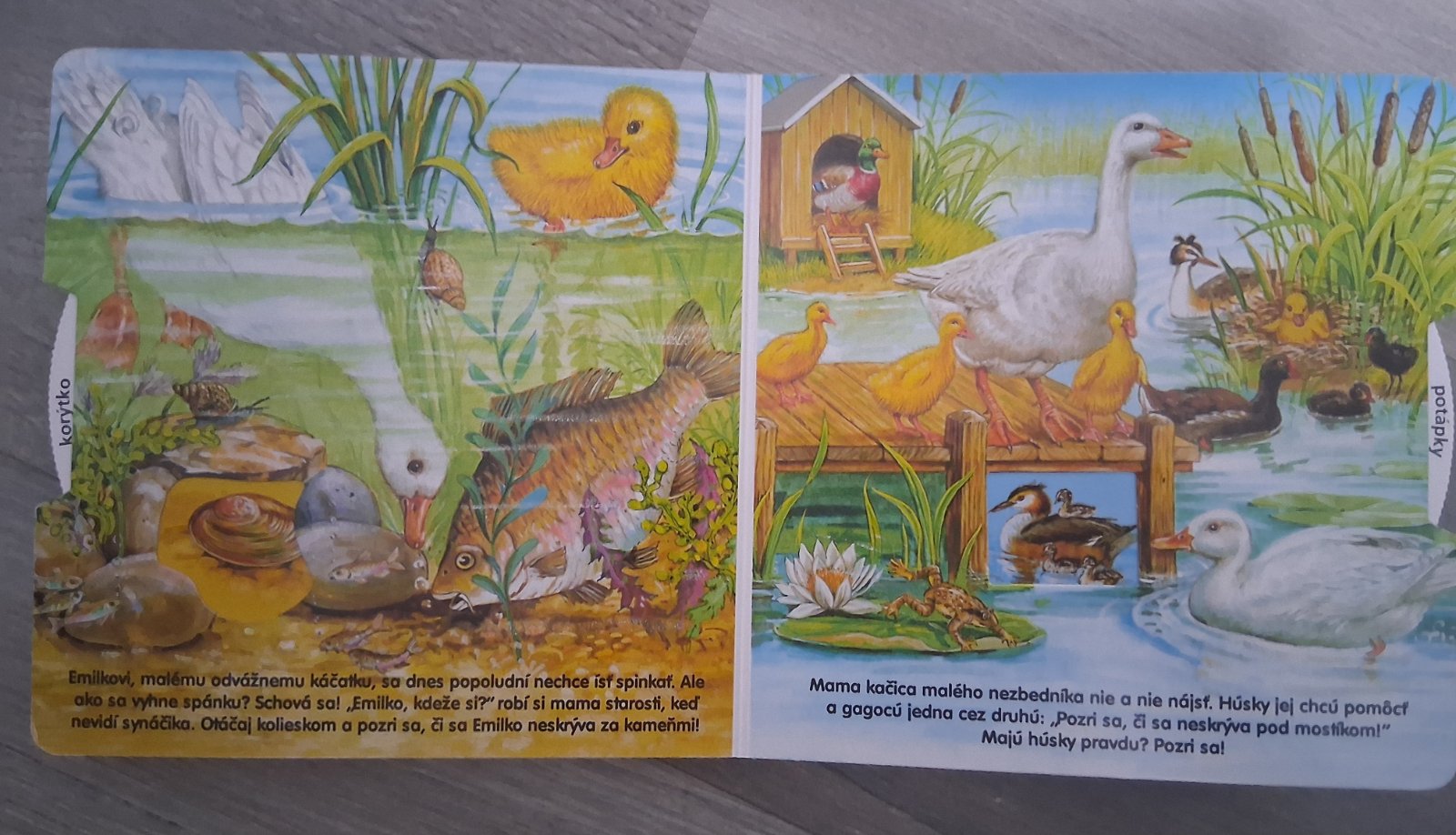 Detske leporelo s kolieskami, ktoré sa dajú točiť na zmenu zvieratiek. Deti ho milovali.