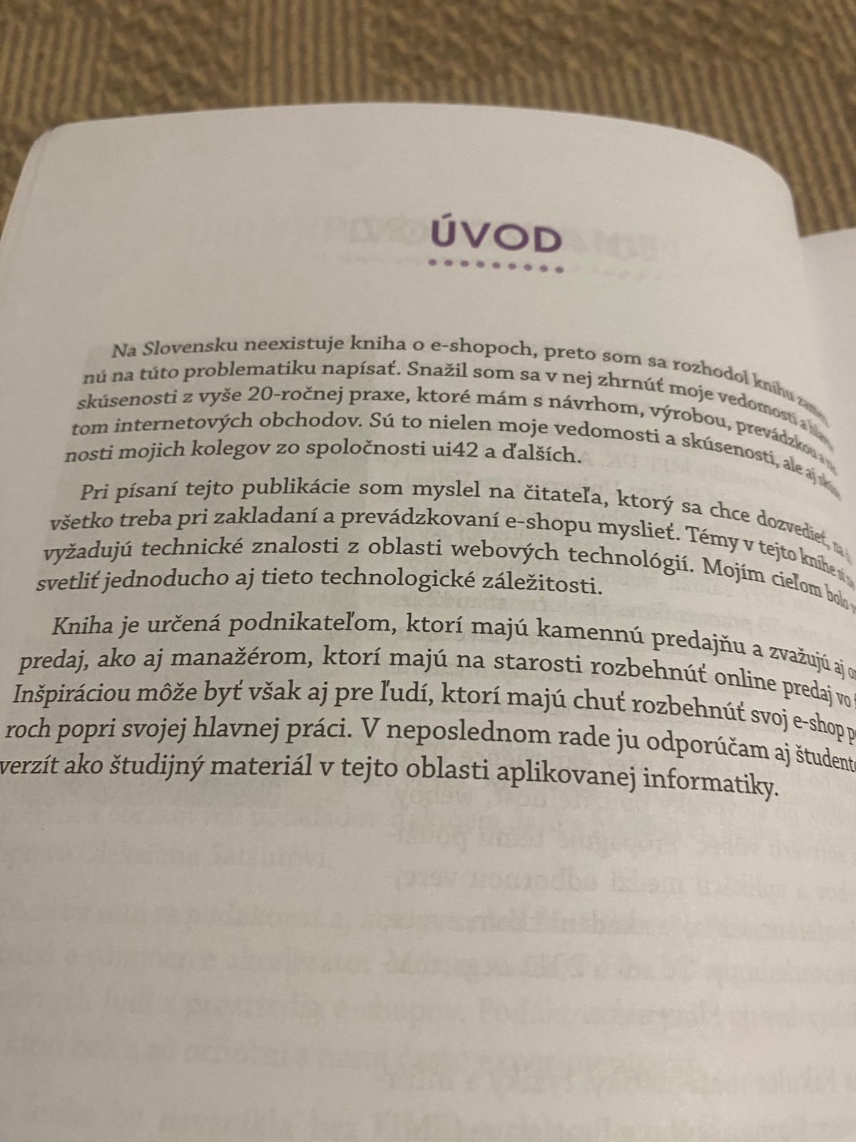 Nakupovanie prostredníctvom internetu je dlhodobo na vzostupe a možno predpokladať, že počet kupujúcich, ako aj predávajúcich bude naďalej rásť. Do dnešného dňa sa však na slovenskom knižnom trhu neobjavila kniha, ktorá by sa venovala špeciálne e-shopom.