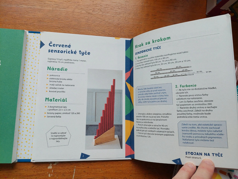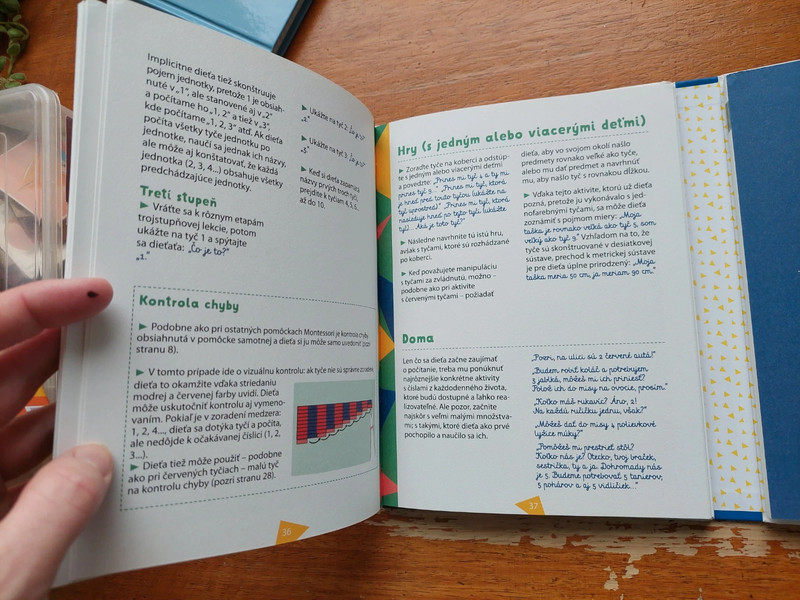Jedna príručka, ktorá vám umožní pochopiť, ako dieťa objavuje pojem čísla. Jedenásť „návodov na použitie“, ktoré vás naučia, ako pomôcky správne používať. Osem predmetov z dreva, stojany a škatuľky na uloženie pomôcok, ktoré môžete sami vyrobiť podľa ilustrovaného návodu krok za krokom. To všetko nájdete v tejto jedinečnej dielni montessori! Vďaka zmyslovým a hravým pomôckam môžete podporiť bytostnú potrebu svojho dieťaťa byť samostatným a nechať ho, aby sa učilo samo. Ak sa budete riadiť návodmi v technickom zošite, môžete vlastnoručne vyrobiť pomôcky, ktoré poskytnete svojmu dieťaťu ako nástroj na osvojenie vedomostí. Pomôcky budú praktické aj kvalitné, a budú šetriť vašu peňaženku. Pedagogická príručka vytvorená učiteľkou a školiteľkou pedagogiky Montessori vás prevedie všetkými etapami prezentácie pomôcok a umožní vám ponúknuť dieťaťu pomoc, ktorú od vás potrebuje, aby mohlo dosiahnuť pokrok samostatne.