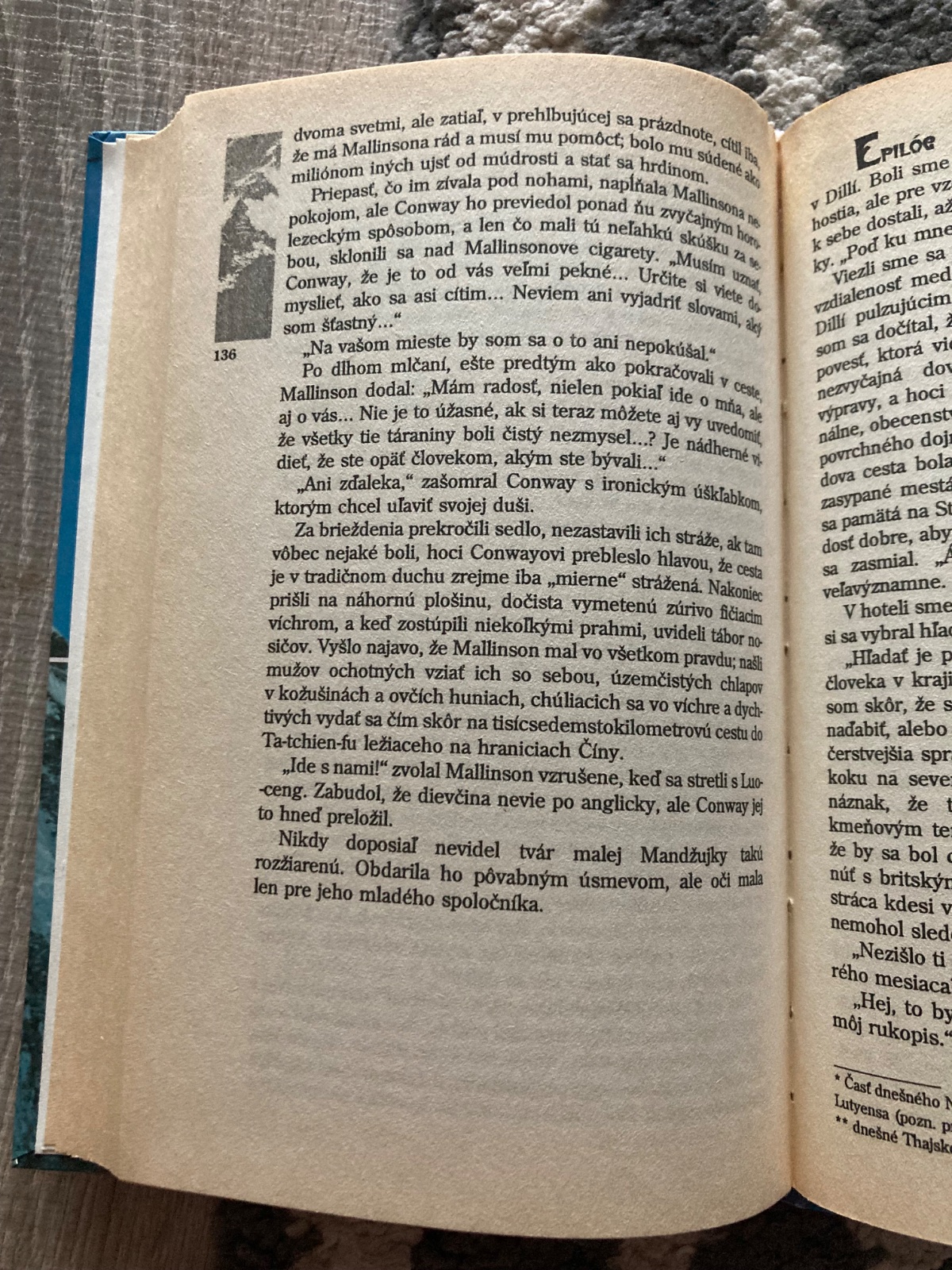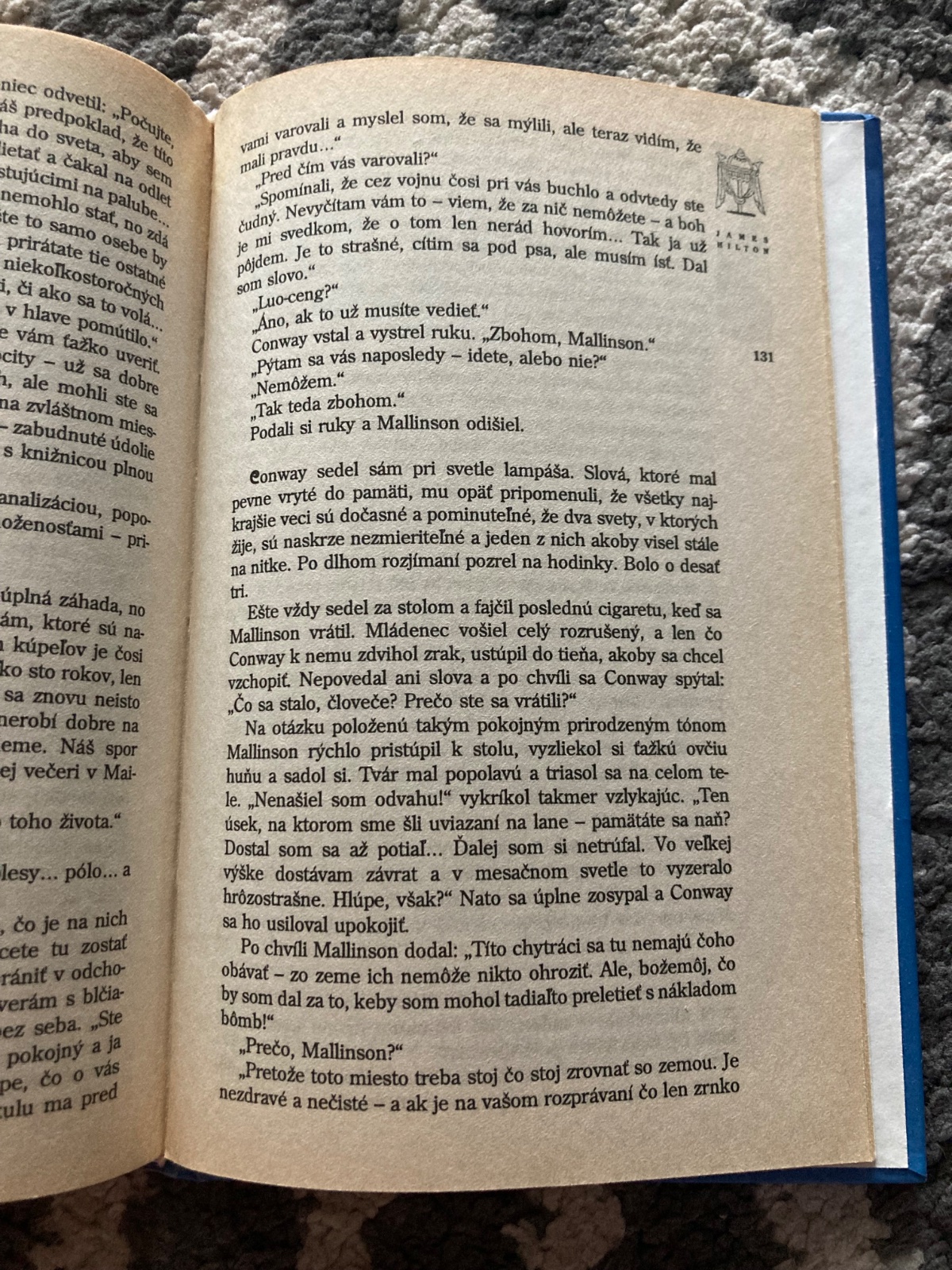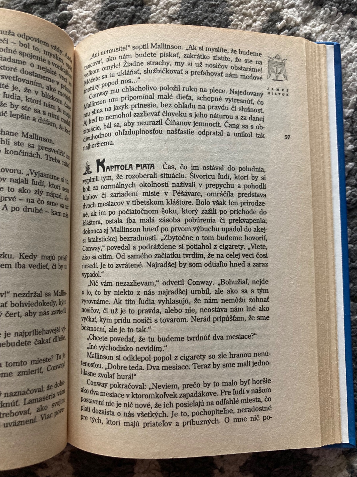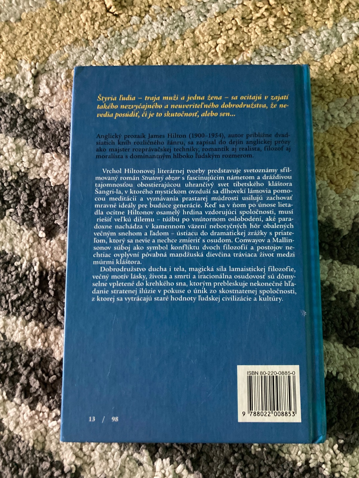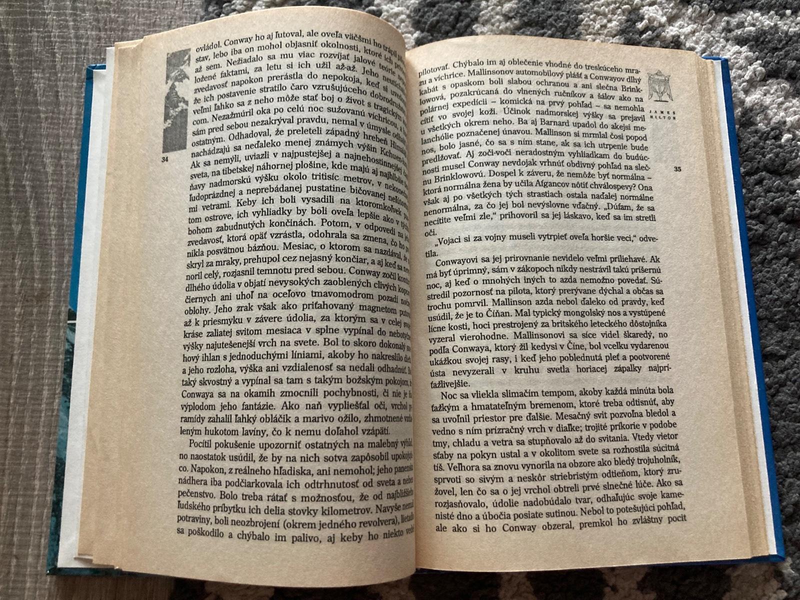 Kniha bola zaradená do edície Spoločnosť priateľov krásnych kníh. Ide o mystický príbeh z Tibetu, v ktorom sú štyria ľudia unesení do odľahlého a tajomného kláštora Šangri-la.