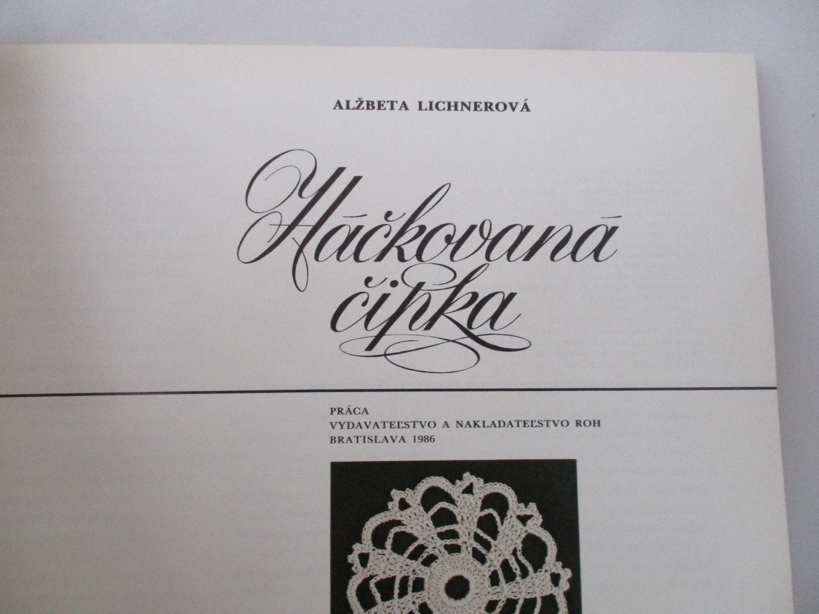 Kniha autorky Alžbety Lichnerovej, vydaná vydavateľstvom Práca Bratislava v r. 1986, v ktorej nájdete veľké množstvo háčkovaných vzorov, o.i. aj ukážky techniky írskeho háčkovania a flanderskej čipky. Publikácia prehľadne a zrozumiteľne podáva základy háčkovania a prináša názorné ukážky jednotlivých základných prvkov háčkovania. Kniha je vo veľmi dobrom stave, bez poškodenia. cena 9,-€ + poštovné