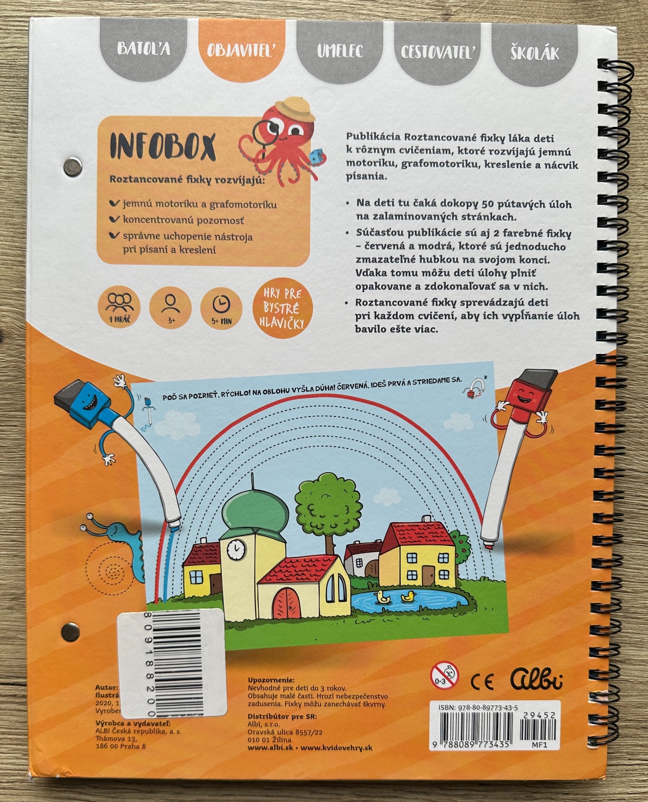 ☘️❤️Tato kniha bola pouzita ale stav vynikajuci, vycisteny, skoro ako novy, z 2fixiek sa nachadza modra, ale ta uz ma to co za sebou. Cervena fixka chyba.Zohladnene v cene. Dolny roh obalky mierne suchnutie.Roztancované fixy sú interaktívne grafomotorické zošity plné obrázkov a aktivít s príbehmi 2 farebných fixiek, ktoré učia Kvída a predškolské deti kresliť a písať a rozvíjať pri tom jemnú motoriku a zrakové vnímanie.Vďaka zmazateľným fixkám môžu deti zošity vypĺňať opakovane.Šírka:230 mm,Hĺbka:15 mm,Výška:285 mm,Váha:508 g ☘️❤️