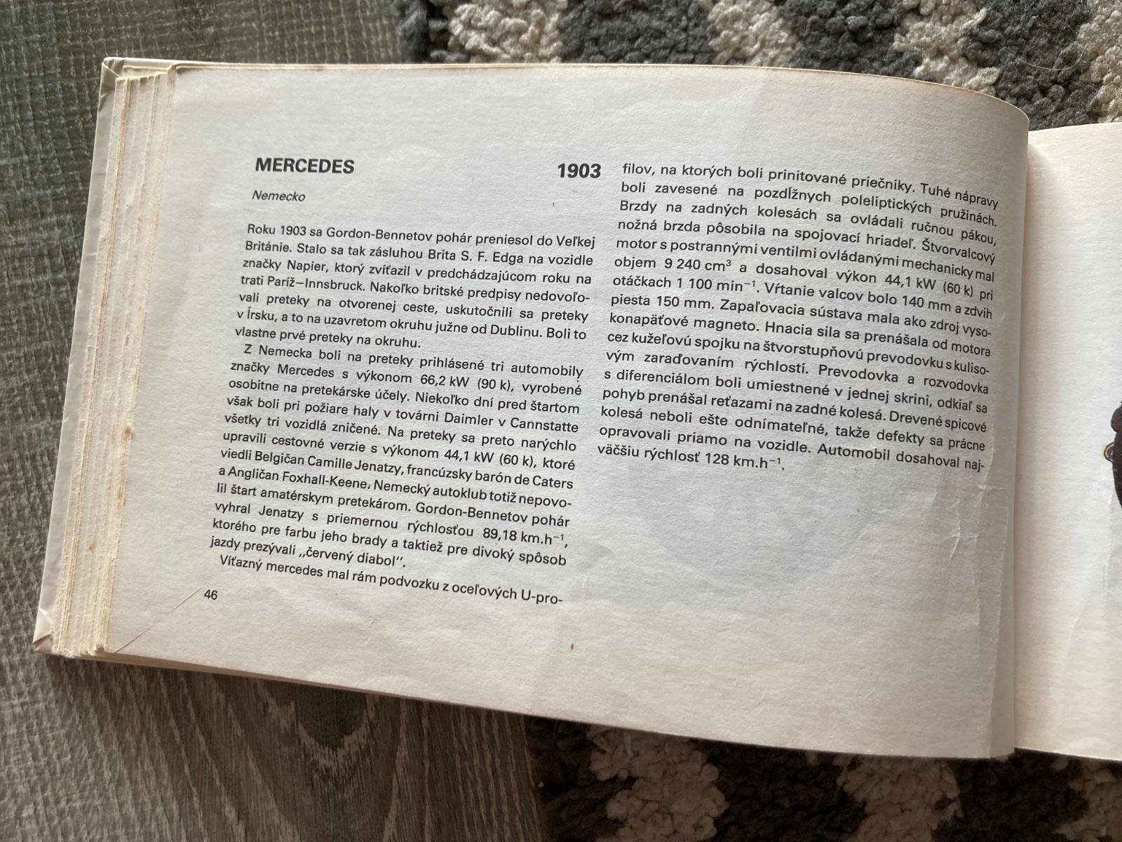 📌Opisy a vyobrazenia automobilov sú zoradené chronologicky od roku 1895 až do roku 1965. Kniha svojim obsahom voľne nadväzuje na knihu "Veterány" tých istých autorov, ktorá vyšla v Alfe v roku 1988. Obe sú určené širokej verejnosti.