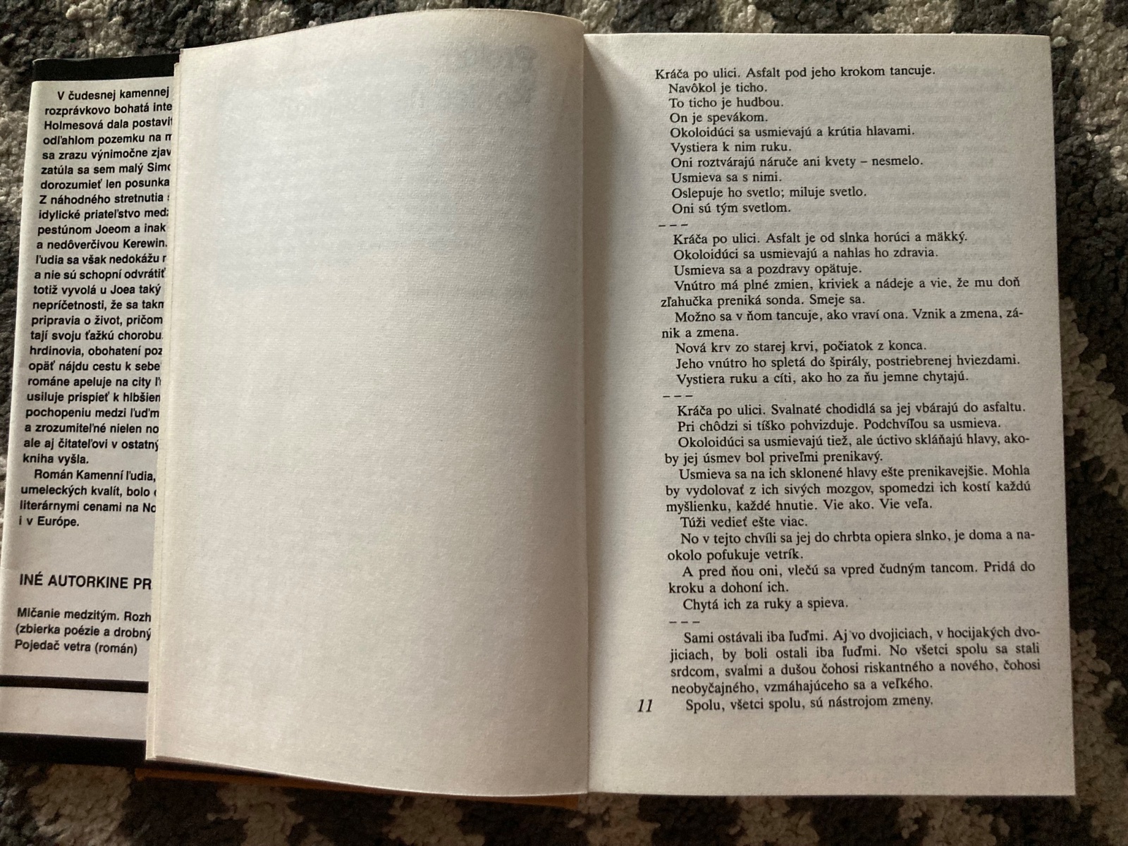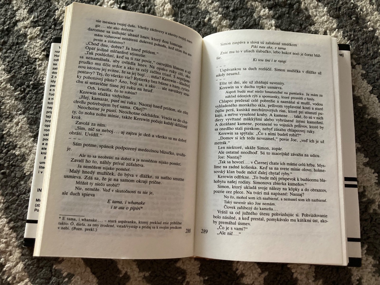 📌Majstrovsky napísaný príbeh bohatej maliarky, prostého maorijského muža a nemého malého chlapca-najdúcha, ktorého vyplavilo more po stroskotaní lode. Na pozadí fascinujúcej novozélandskej prírody sa odohráva dej poprepletaný maorijskými reáliami, autorka na mnohých miestach používa jazyk domorodcov a súčasťou knihy je množstvo odkazov na maorijské mýty a rituály.