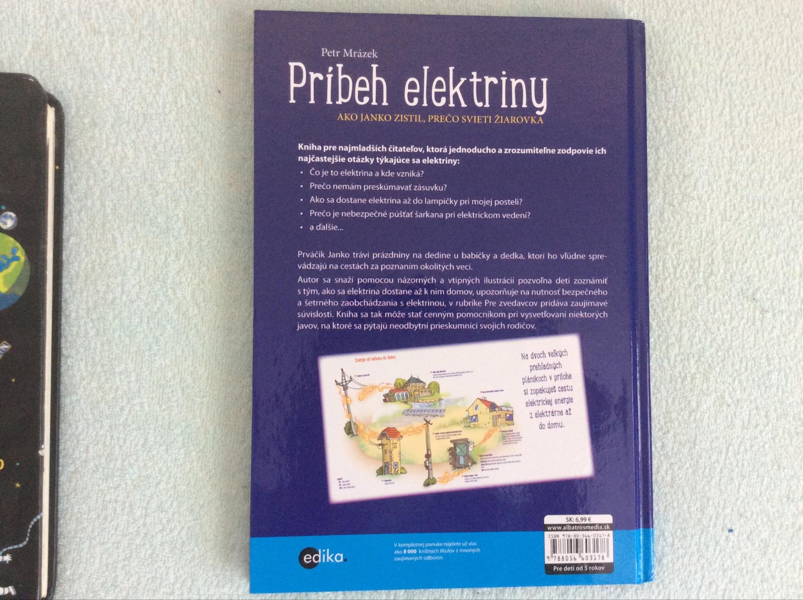 Poučný príbeh, vysvetľuje ako funguje elektrina. Obsah na fotke.