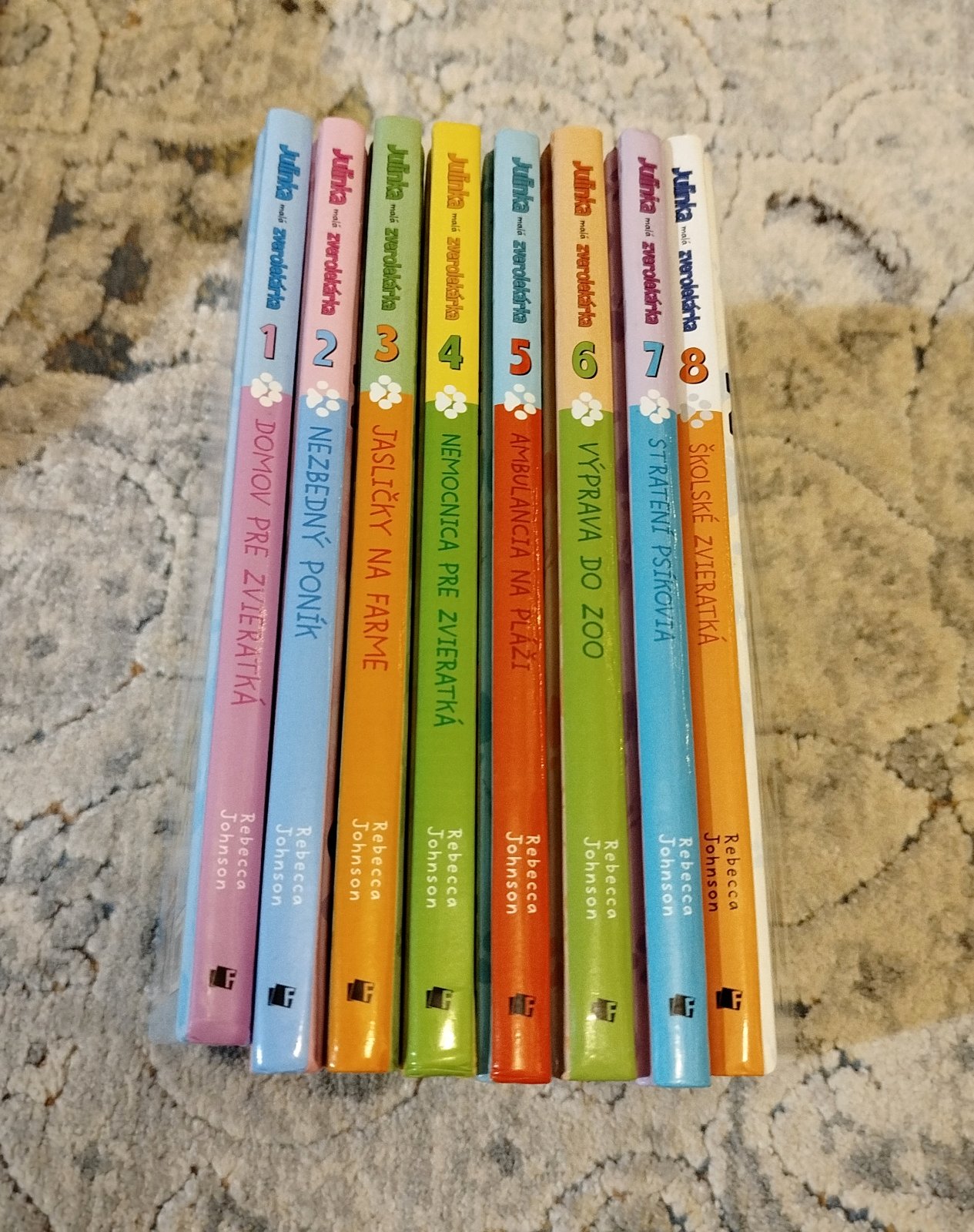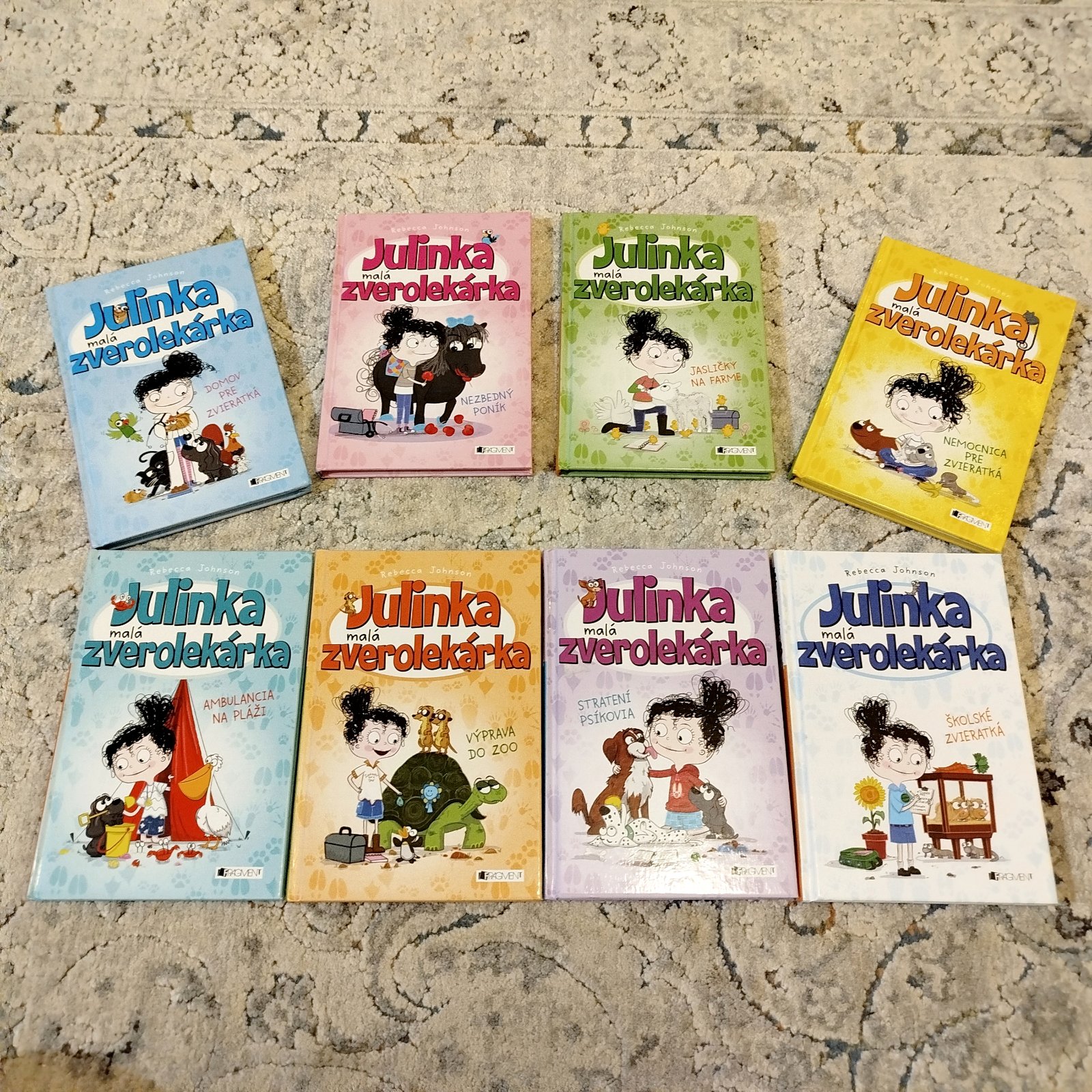 Milé knižky o Julinke malej Zverolekárke vo výbornom stave, diely 1-8. Písmenká sú väčšie (viď foto), vhodné od 7mich rokov, aj na prvé čítanie. Cena a predaj LEN SPOLU celá sada + pošta.