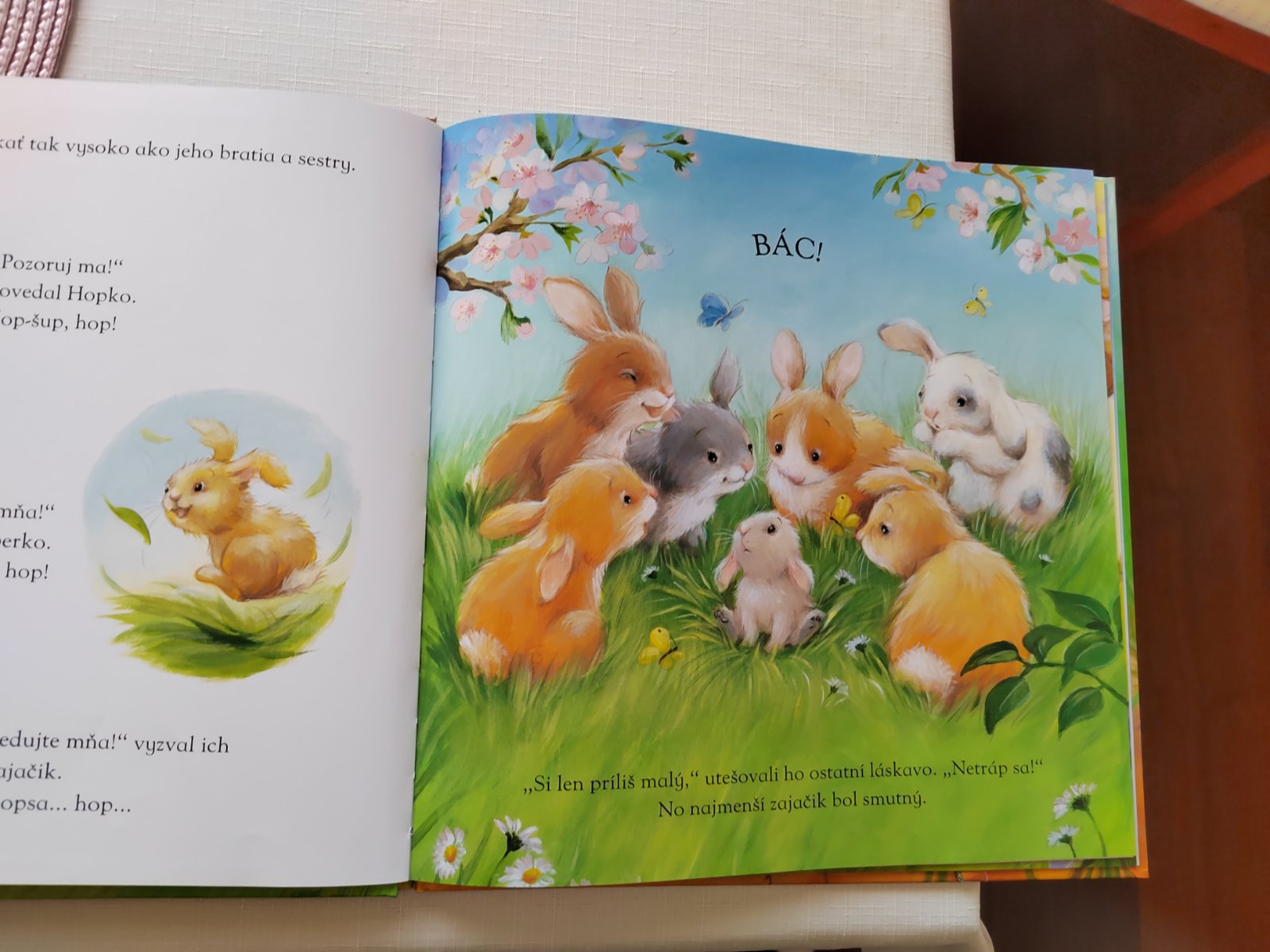 Hopsa-hopsa! Najmenší zajačik túži skákať tak vysoko ako jeho bratia a sestry.