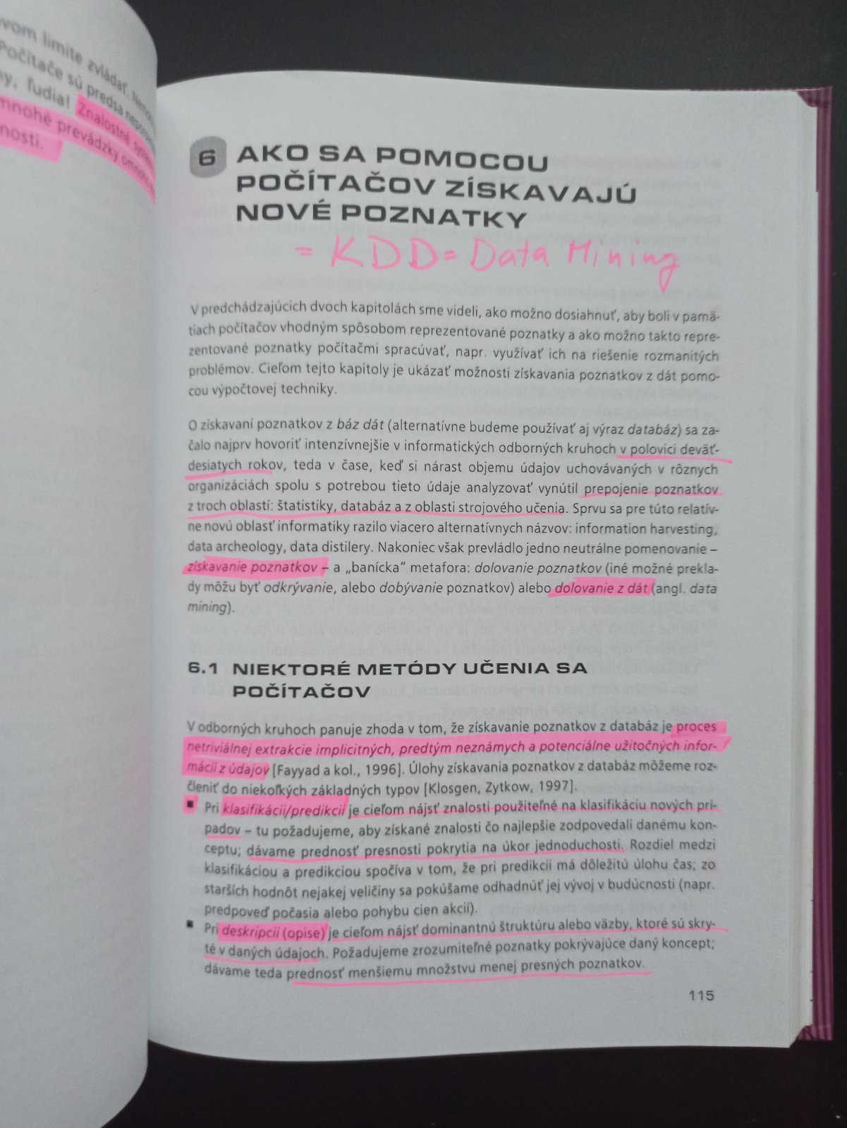 Publikácia stručne načrtáva cestu, ktorou prešli určité oblasti vedy, techniky a kultúry, kým sa ľudstvo dopracovalo k informačným technológiám významne určujúcim charakter spoločnosti. V jednotlivých kapitolách sa zameriava na tzv. dolovanie poznatkov z dát, t. j. načrtnutiu postupov, ktoré umožňujú z rozsiahlych báz dát uchovávaných pomocou elektronických médií v pamätiach počítačov získavať použitím výpočtovej techniky a primeraných informačných technológií nové poznatky. Publikácia je určená nielen študentom, ale všetkým, ktorí z najrozmanitejších dôvodov majú záujem o poznanie atribútov znalostnej spoločnosti a procesov v nej prebiehajúcich.