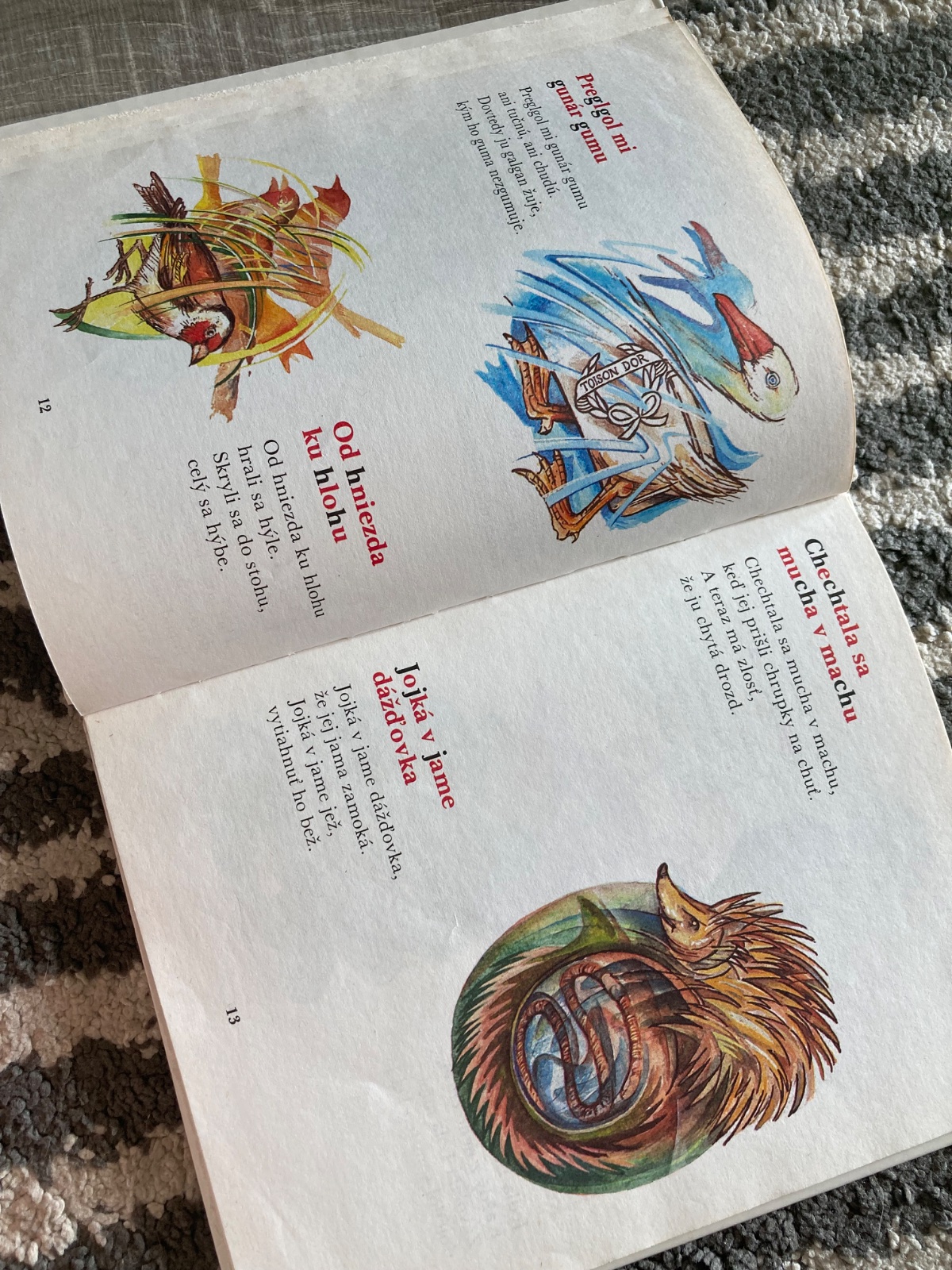 🔹Súbor krátkych, ľahko zapamätateľných básničiek a riekaniek o zvieratkách, kvetoch a bežných predmetoch, s ktorými sa deti stretávajú.