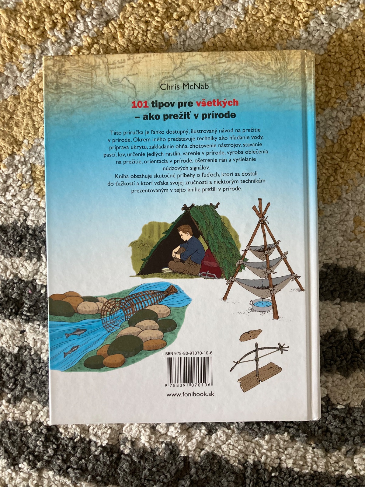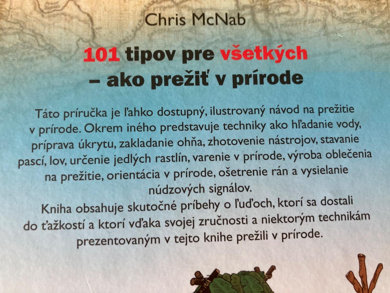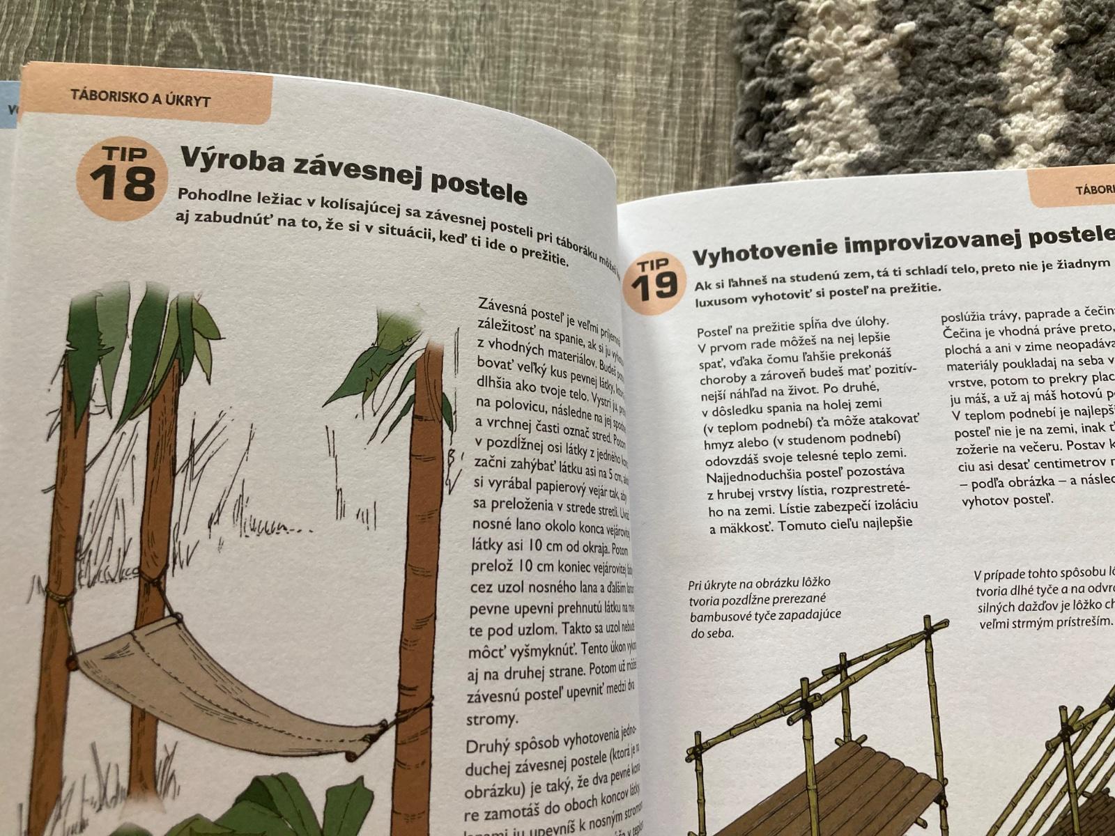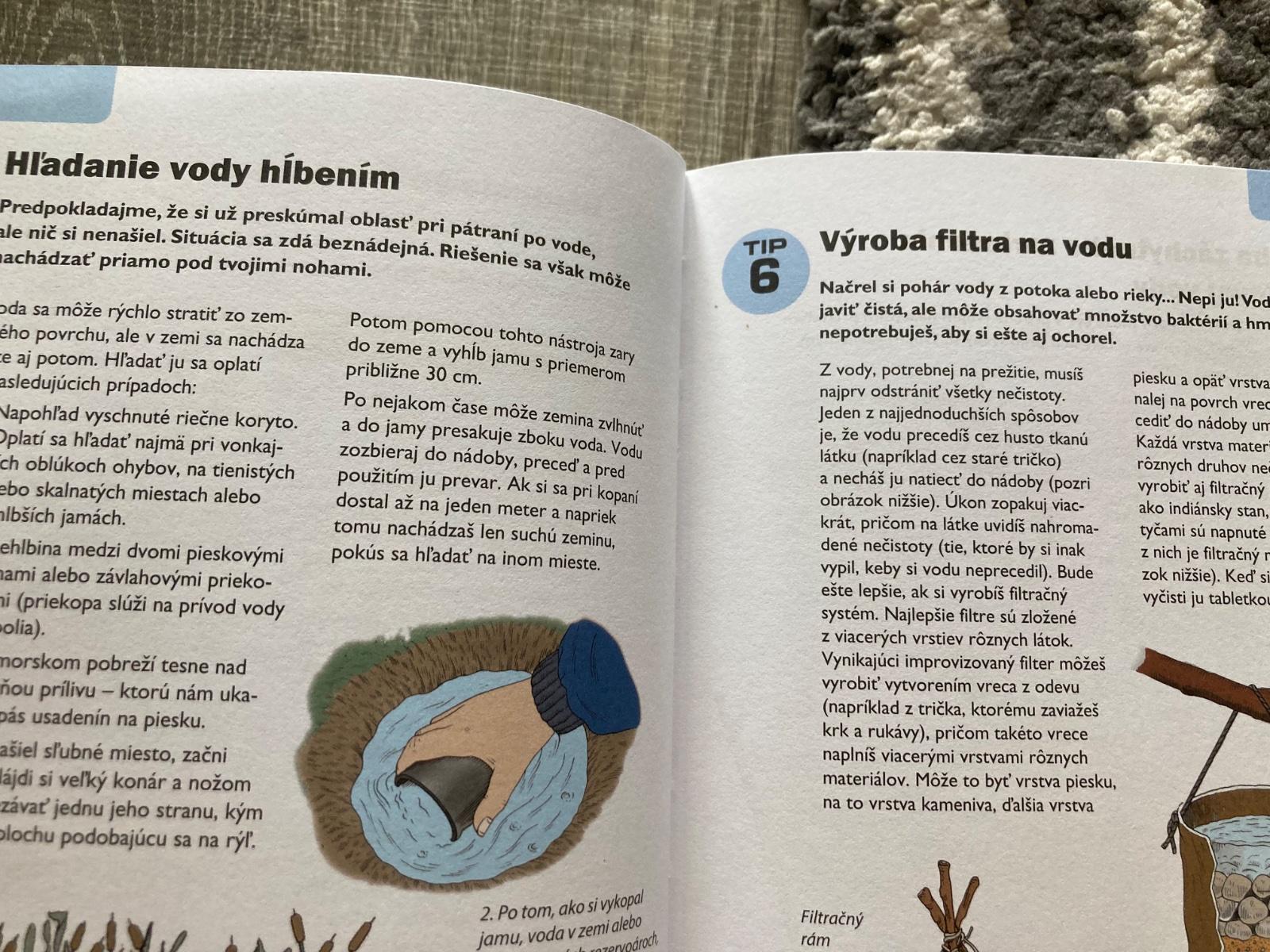 📌Táto príručka je ľahko dostupný, ilustrovaný návod na prežitie v prírode. Okrem iného predstavuje techniky ako hľadanie vody, príprava úkrytu, zakladanie ohňa, zhotovenie nástrojov, stavanie pascí, lov, určenie jedlých rastlín, varenie v prírode, výroba oblečenia na prežitie, orientácia v prírode, ošetrenie rán, bodnutí a štípancov a vysielnanie núdzových signálov. Kniha obsahuje skutočné príbehy o ľuďoch, ktorí sa dostali do ťažkostí a ktorí vďaka svojej zručnosti a niektorým technikám prezentovaným v tejto knihe prežili v prírode.