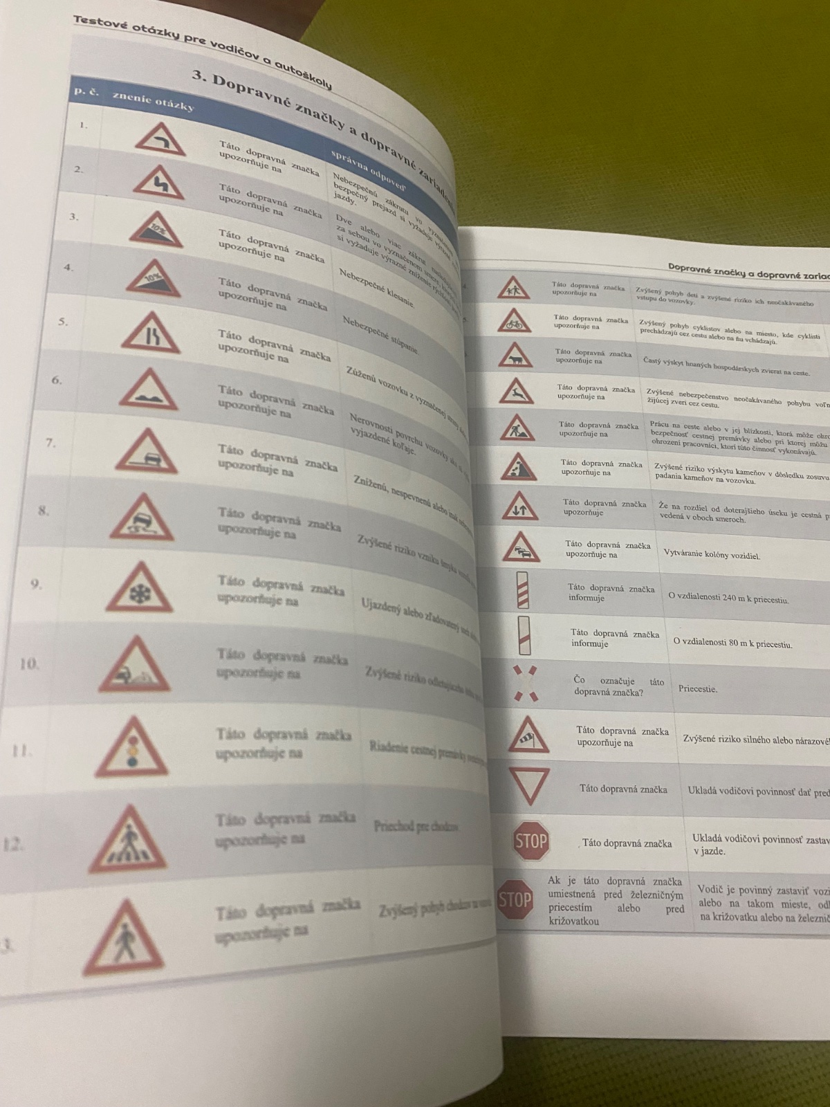 Publikácia „TESTOVÉ OTÁZKY PRE VODIČOV A AUTOŠKOLY“ je nepostrádateľnou učebnou pomôckou pre prípravu žiakov autoškôl na skúšky odbornej spôsobilosti, resp. pre prípravu vodičov na preskúšanie odbornej spôsobilosti v zákonom ustanovených prípadoch. Obsahuje vyše 1400 skúšobných otázok, z ktorých policajný počítač generuje osobitný skúšobný test pre každého žiaka či vodiča.