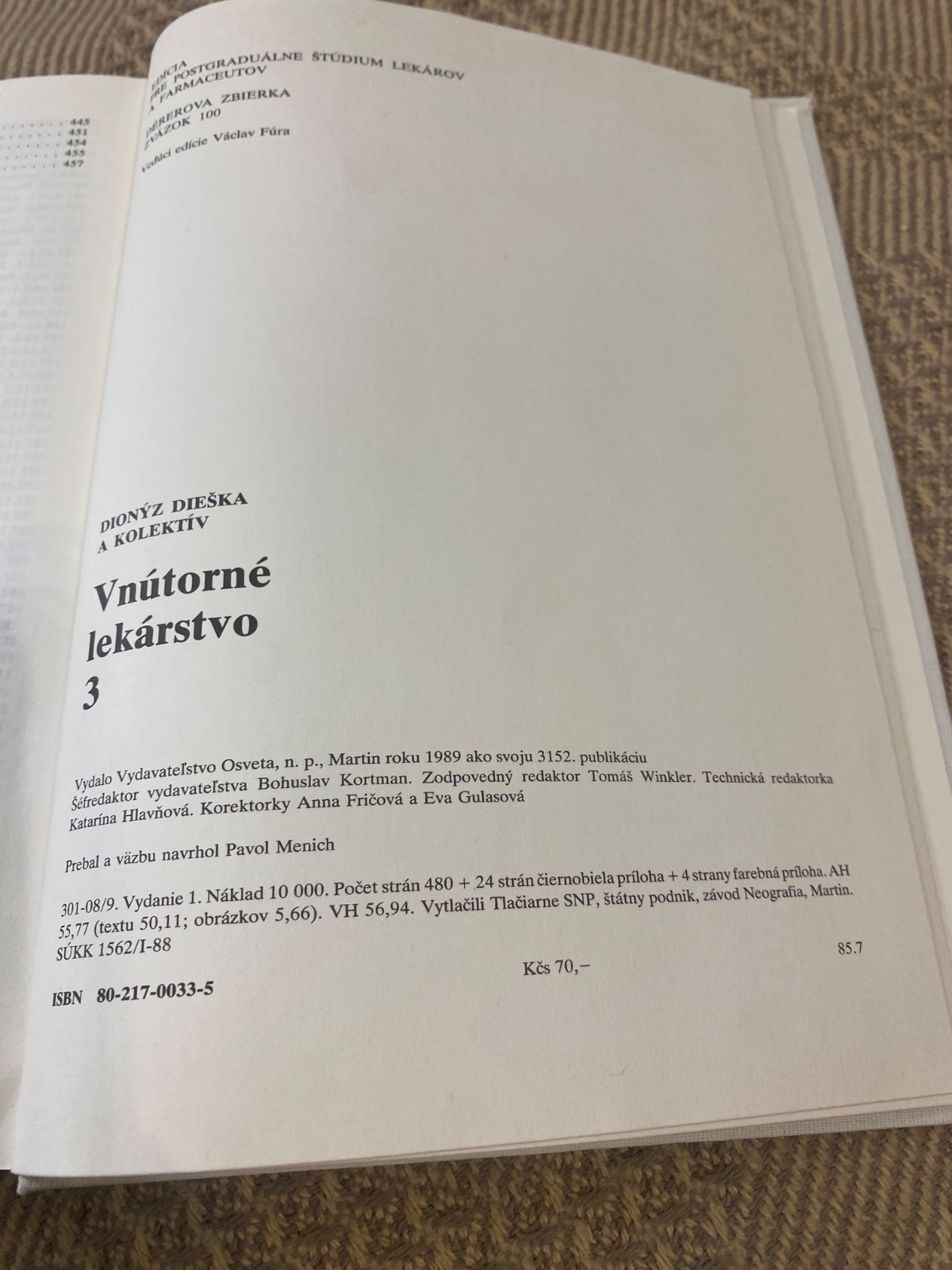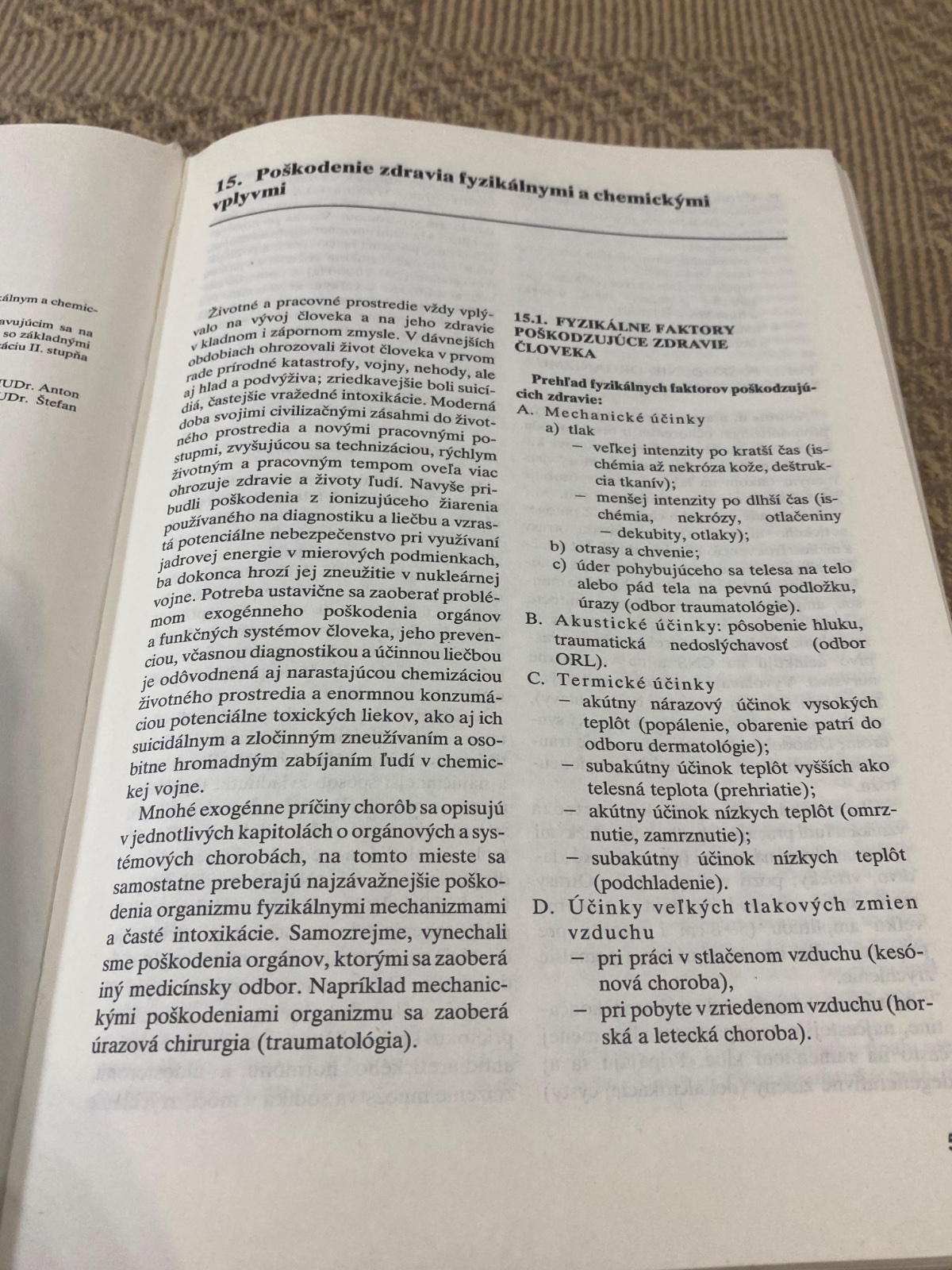 Monografia a postgraduálna príručka vnútorného lekárstva obsahujúca kapitoly venované fyzikálnym a chemickým faktorom poškodzujúcim zdravie, nefrológii a pneumológii.