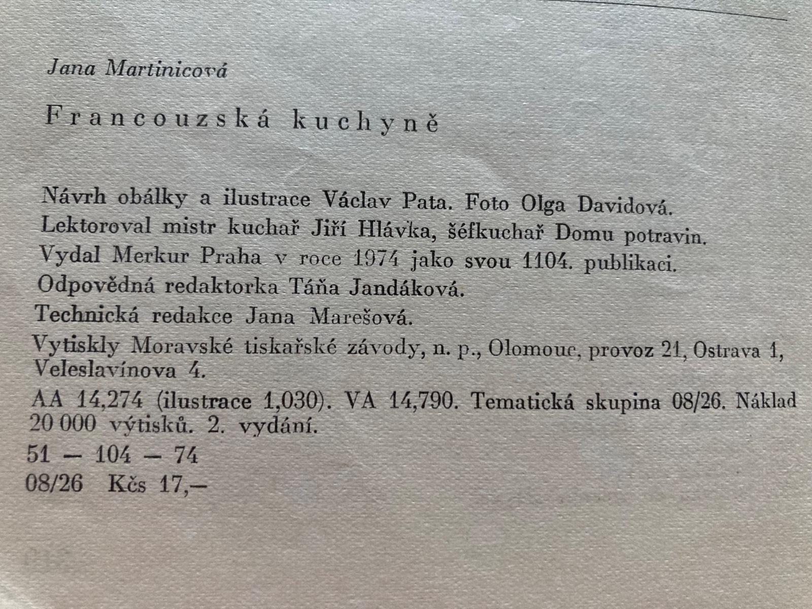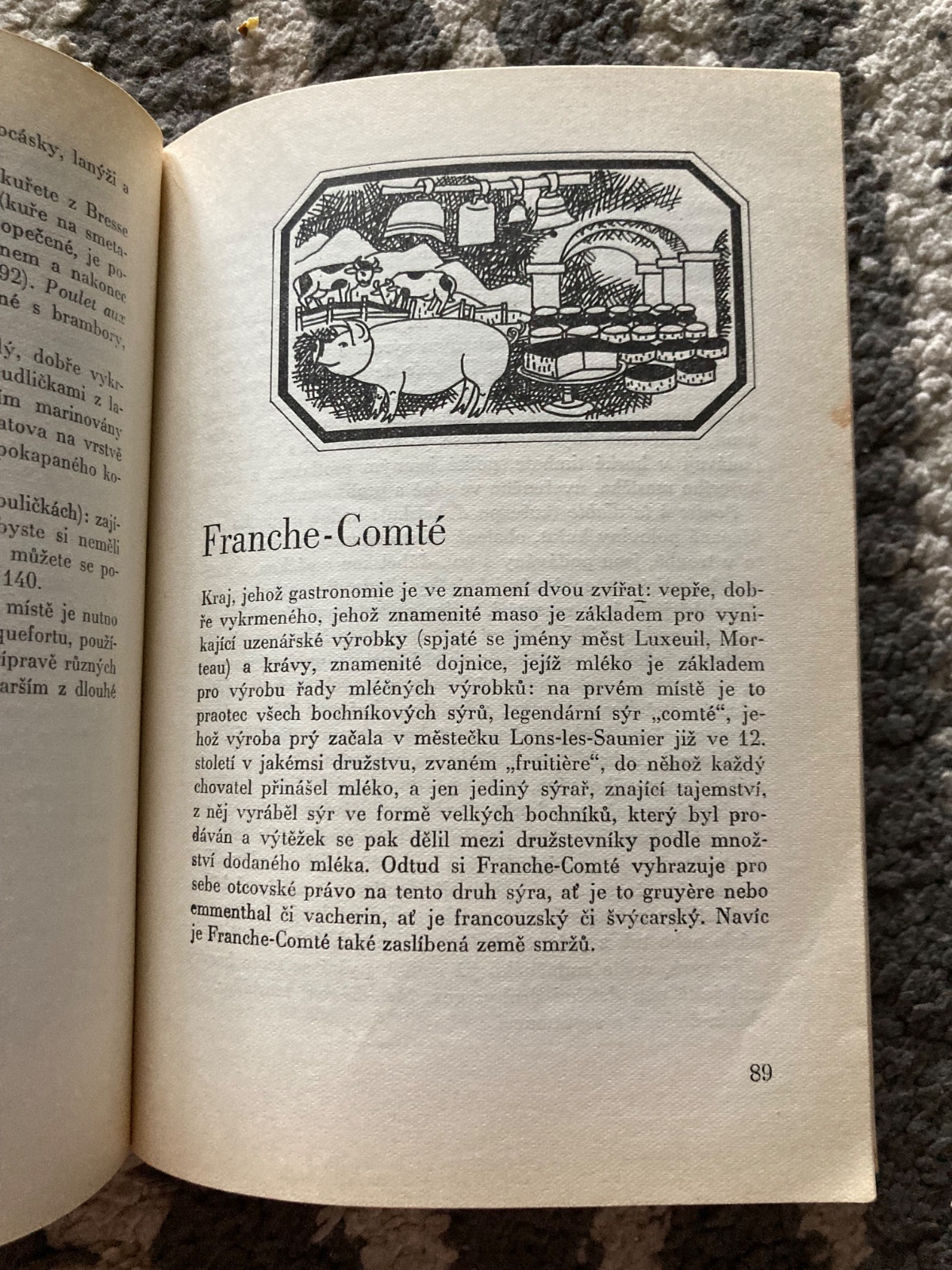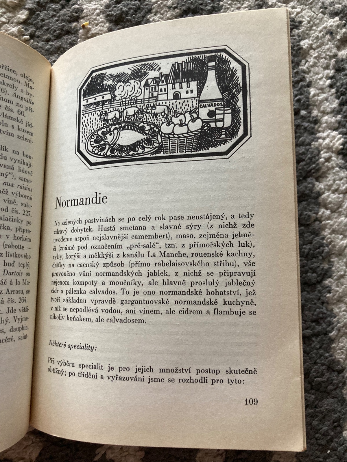 🔹Kuchařka se zaměřuje na tradiční francouzská jídla, recepty, speciality, omáčky a kuchařské techniky, uvádí i zmínky o vínech, sýrech a mořských plodech.