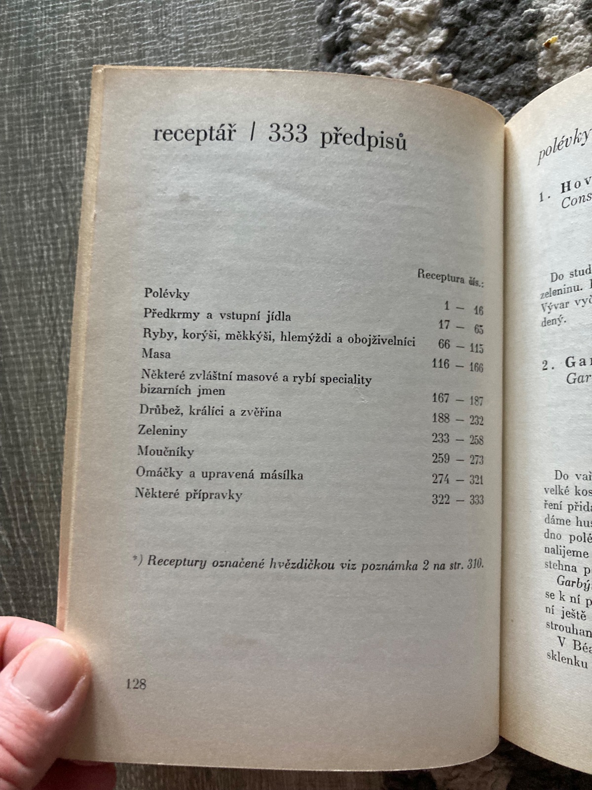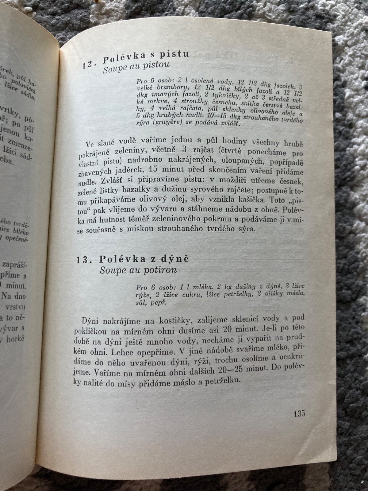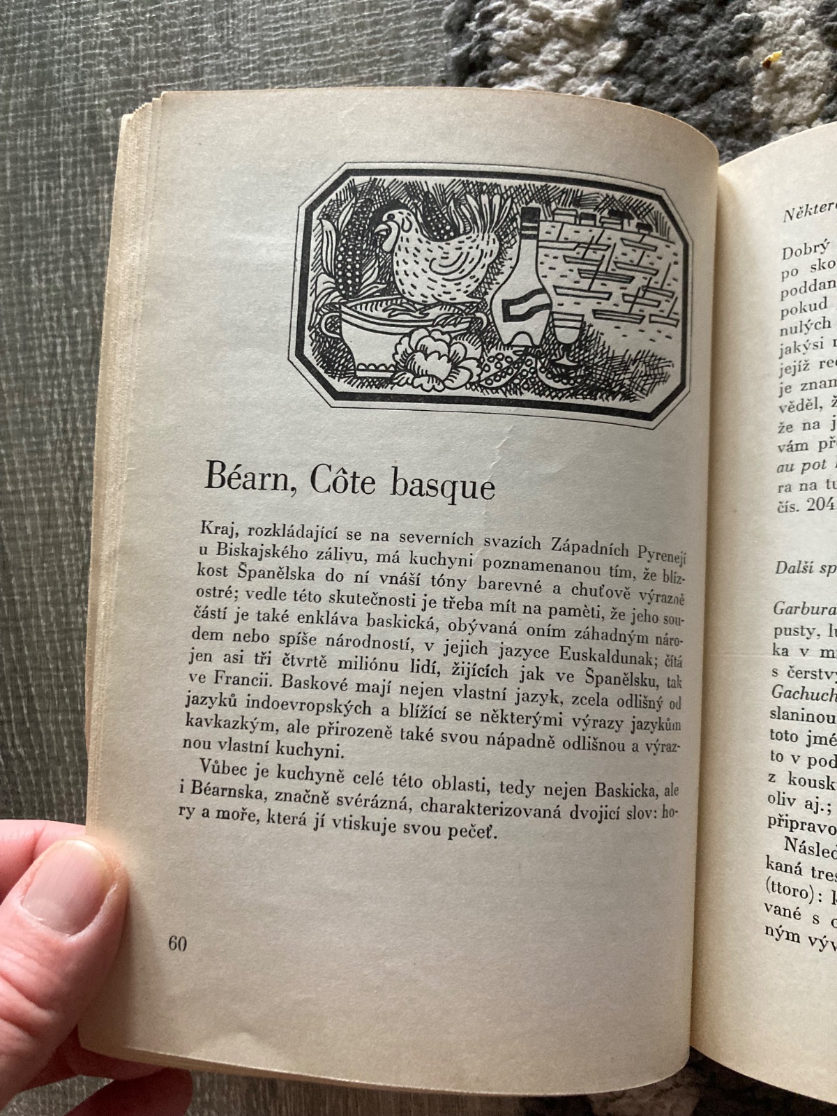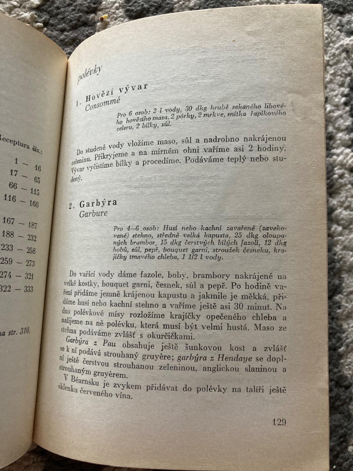 🔹Kuchařka se zaměřuje na tradiční francouzská jídla, recepty, speciality, omáčky a kuchařské techniky, uvádí i zmínky o vínech, sýrech a mořských plodech.