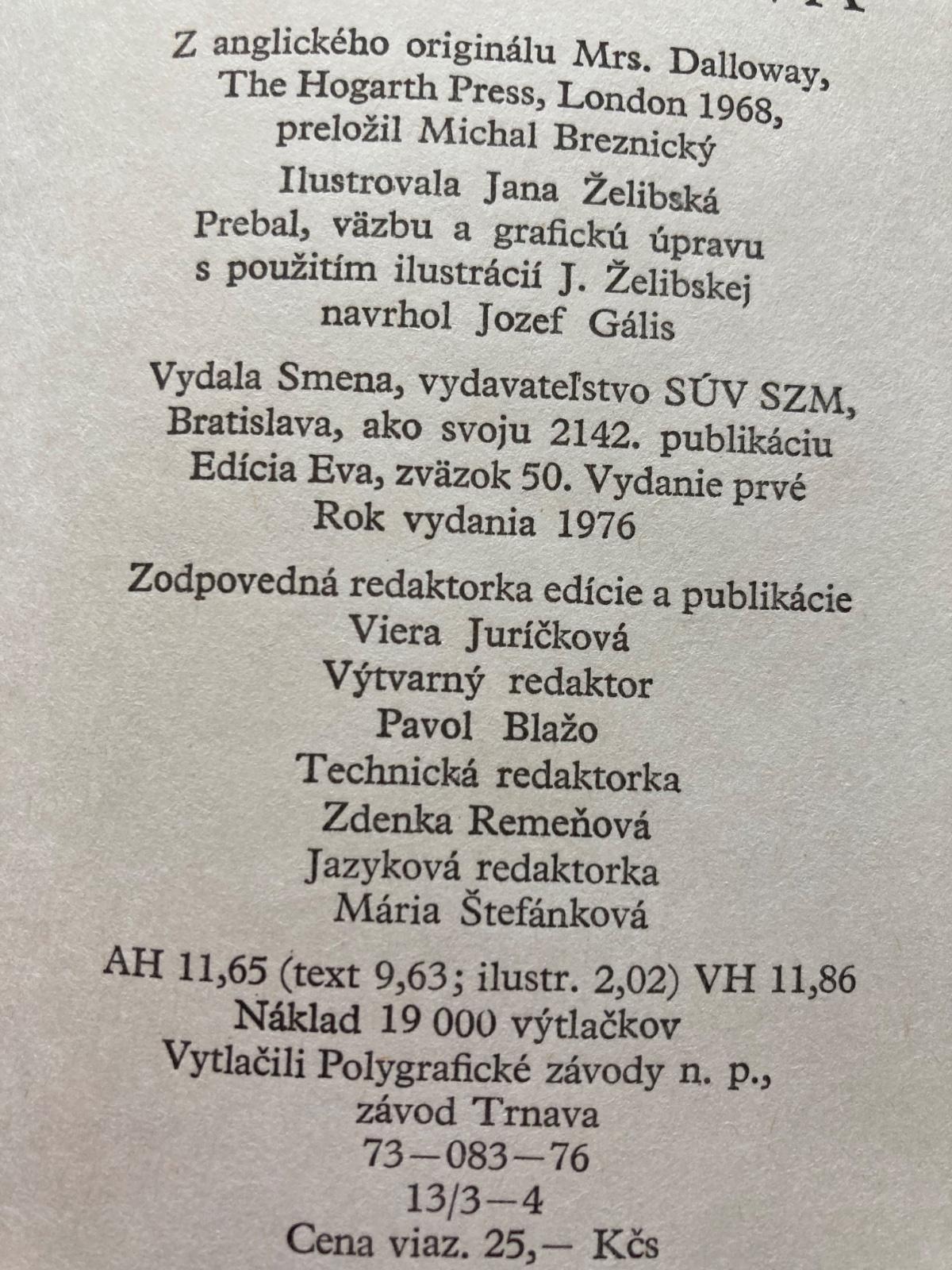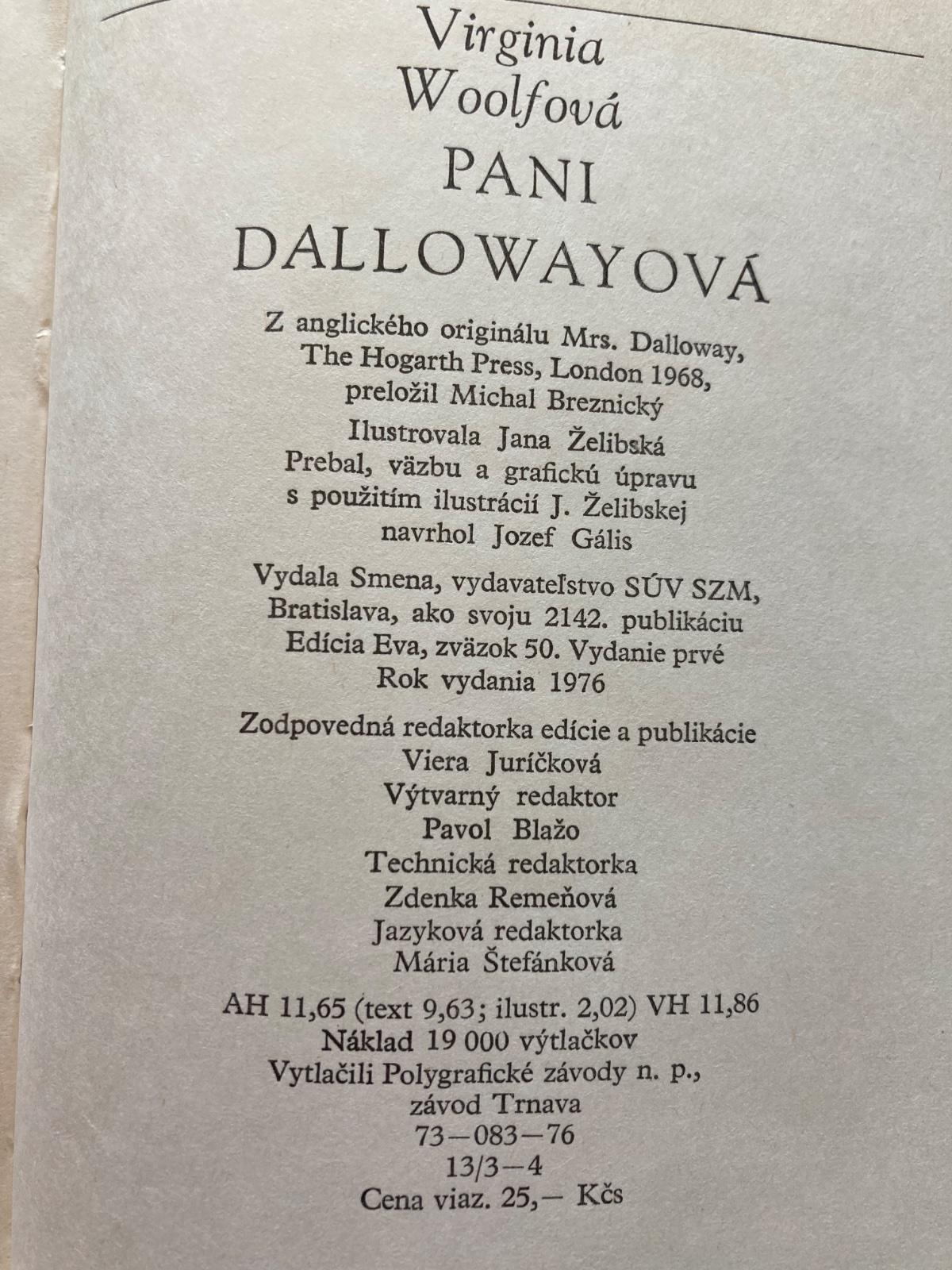 📌Román Pani Dallowayová, ktorý sa pokladá za prvé majstrovské dielo Virginie Woolfovej, vyšiel prvý raz v roku 1925. Dej sa odohrá za jediný deň, no za neveľký časový úsek sa rozprávanie rozbieha do nekonečných hlbín ľudského vedomia. Hlavná hrdinka, bohatá Londýnčanka Clarissa Dallowayová, pripravuje večernú párty pre svojich priateľov. V jej detailných reflexiách okolitého sveta a v spomienkach sa súčasný príbeh prelína s minulosťou. Strhujúci, novátorský štýl autorky postupne odkrýva vnútorný život postáv, ktorých poprepájané osudy sú podobenstvom o tragickom údele moderného človeka v odcudzenom svete. Román, prostredníctvom ktorého autorka „načrela do najspodnejších zákutí svojej mysle“, patrí medzi najvýznamnejšie diela európskej literárnej moderny.