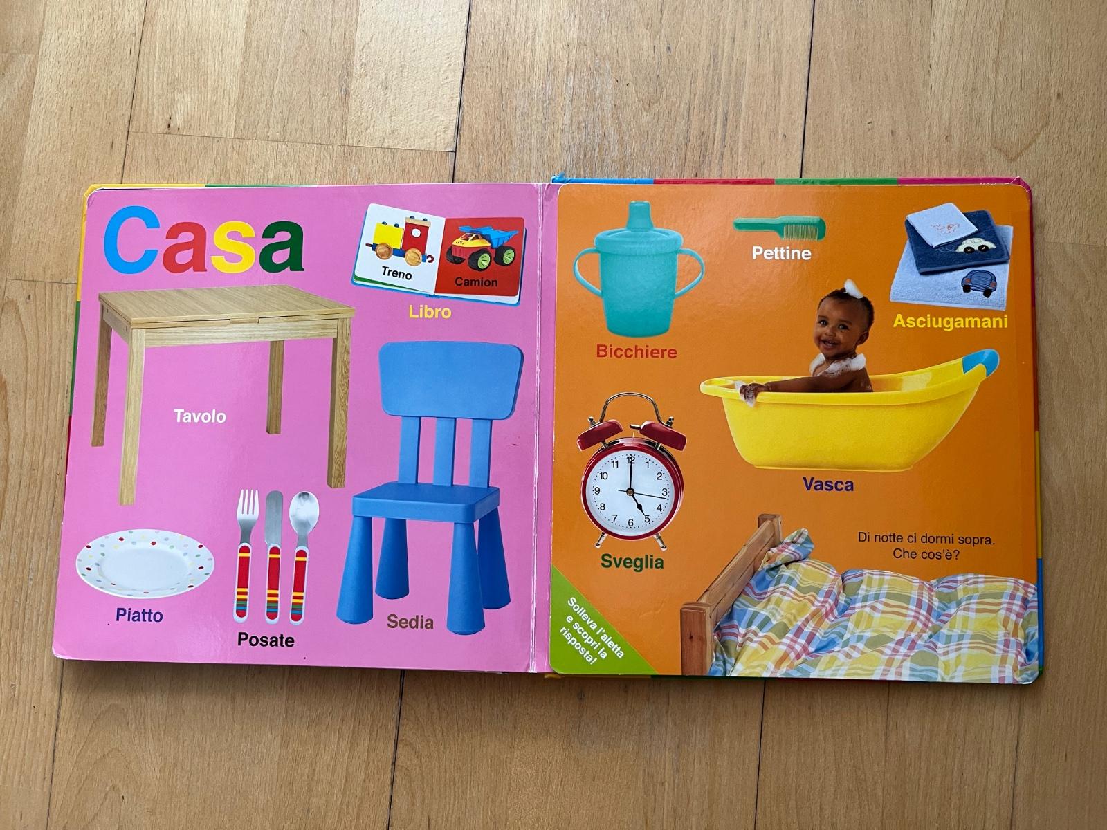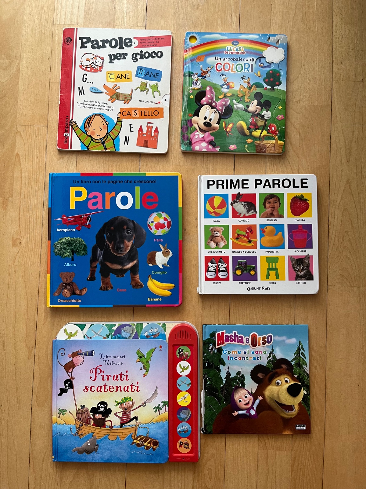 Predam 6 ks knizky v tal. jazyku, prve slovíčka a čítanie. Dlhsie ležali v polici, slusny stav.