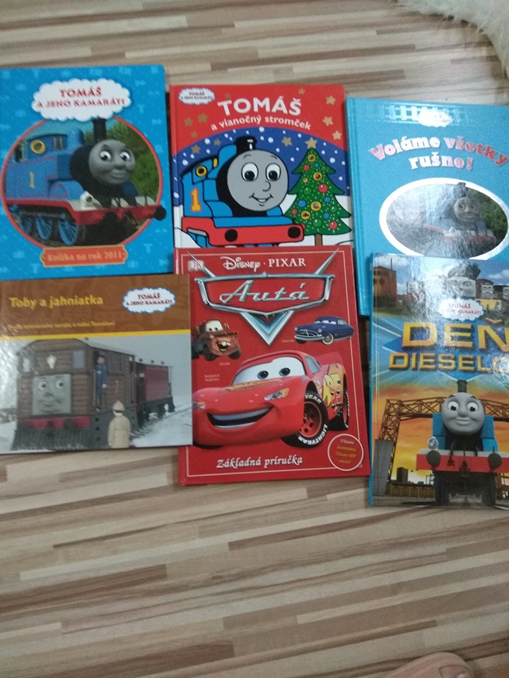 Vlavo hore, modra kniha tomas je sita a to sitie sa uvolnilo na niektorych stranach, tak sme zlepili, cena 5eur,
