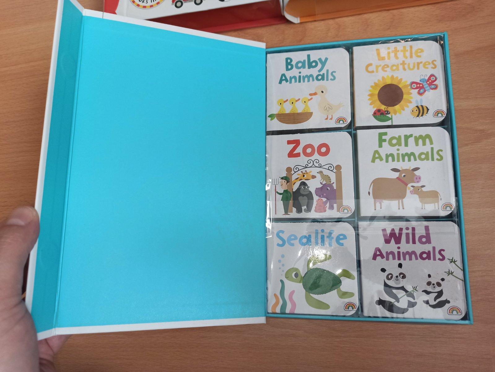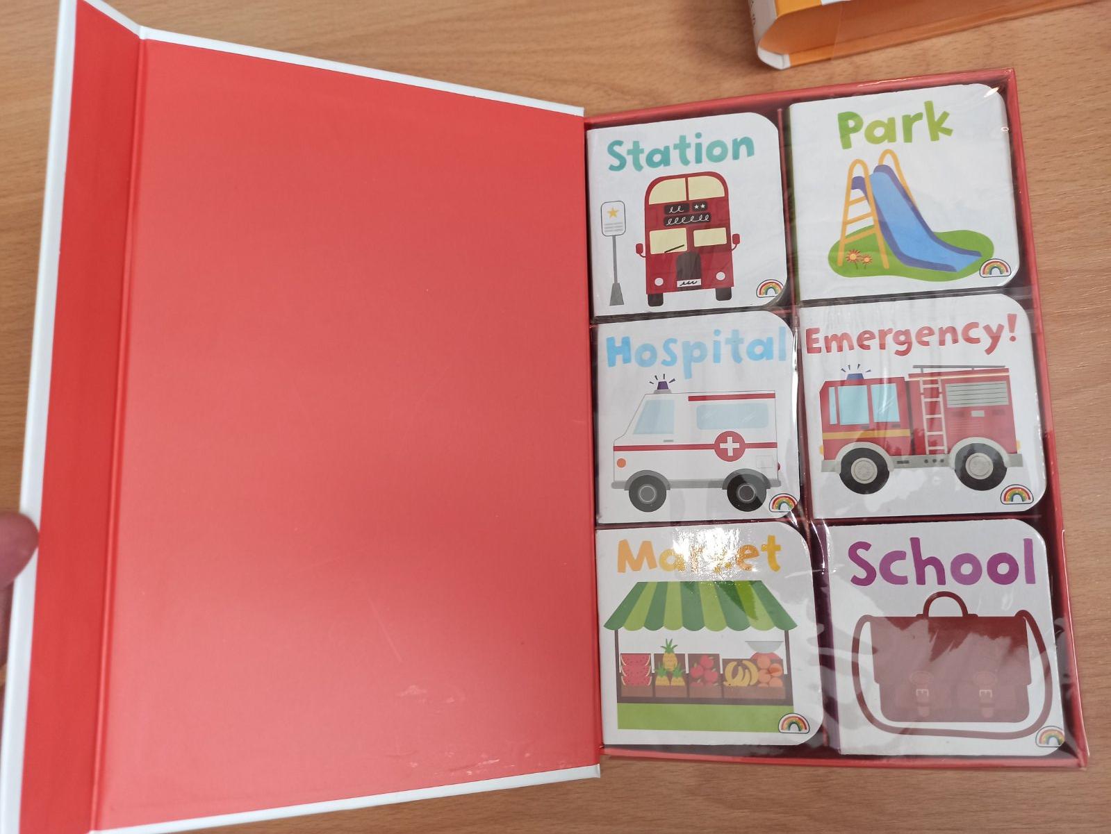 Zbierka malych leporel spolu v kartonovej kazete.