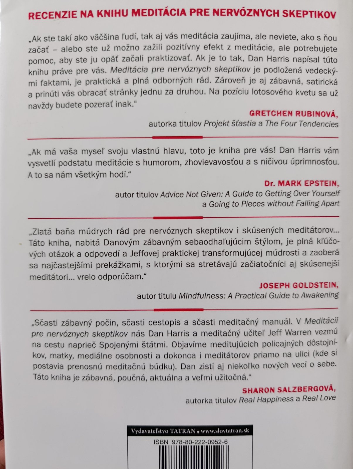 Predám: "Meditácia pre nervóznych skeptikov" Kniha je plná prevratných praktických meditačných inštrukcií. Uprostred toho sa odvíja zvláštny a zábavný príbeh toho, čo sa stane, keď sa sarkastický novinár osobnosti typu A a moderný kanadský mystik vyberú na jedinečné turné, počas ktorého plánujú bojovať s neurotizmom dnešnej doby.