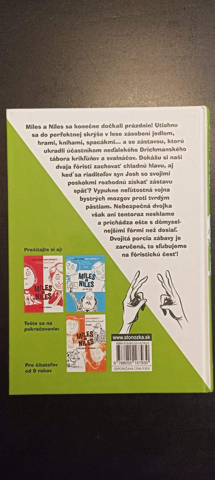 Miles a Niles sa konečne dočkali prázdnin! Utiahnu sa do perfektnej skrýše v lese zásobení jedlom, hrami, knihami, spacákmi. .. a zástavou, ktorú ukradli účastníkom neďalekého Drichmanského tábora krikľúňov a svalnáčov. Dokážu si naši dvaja fóristi zachovať chladnú hlavu, aj keď sa riaditeľov syn Josh so svojimi poskokmi rozhodnú získať zástavu späť? Vypukne neľútostná vojna bystrých mozgov proti tvrdým pästiam. Nebezpečná dvojka však ani tentoraz nesklame a prichádza ešte s dômyselnejšími fórmi než dosiaľ. Dvojitá porcia zábavy je zaručená, to sľubujeme na fóristickú česť! Pre čitateľov od 9 rokov