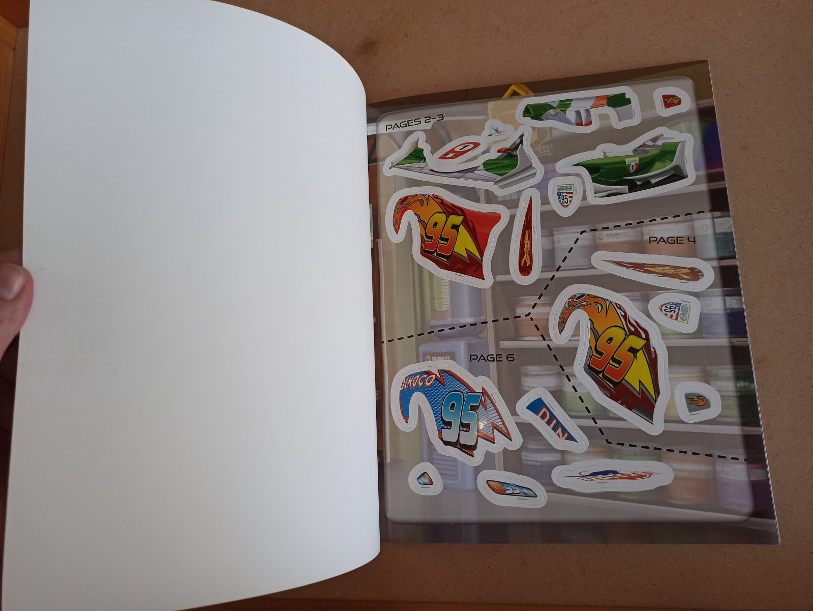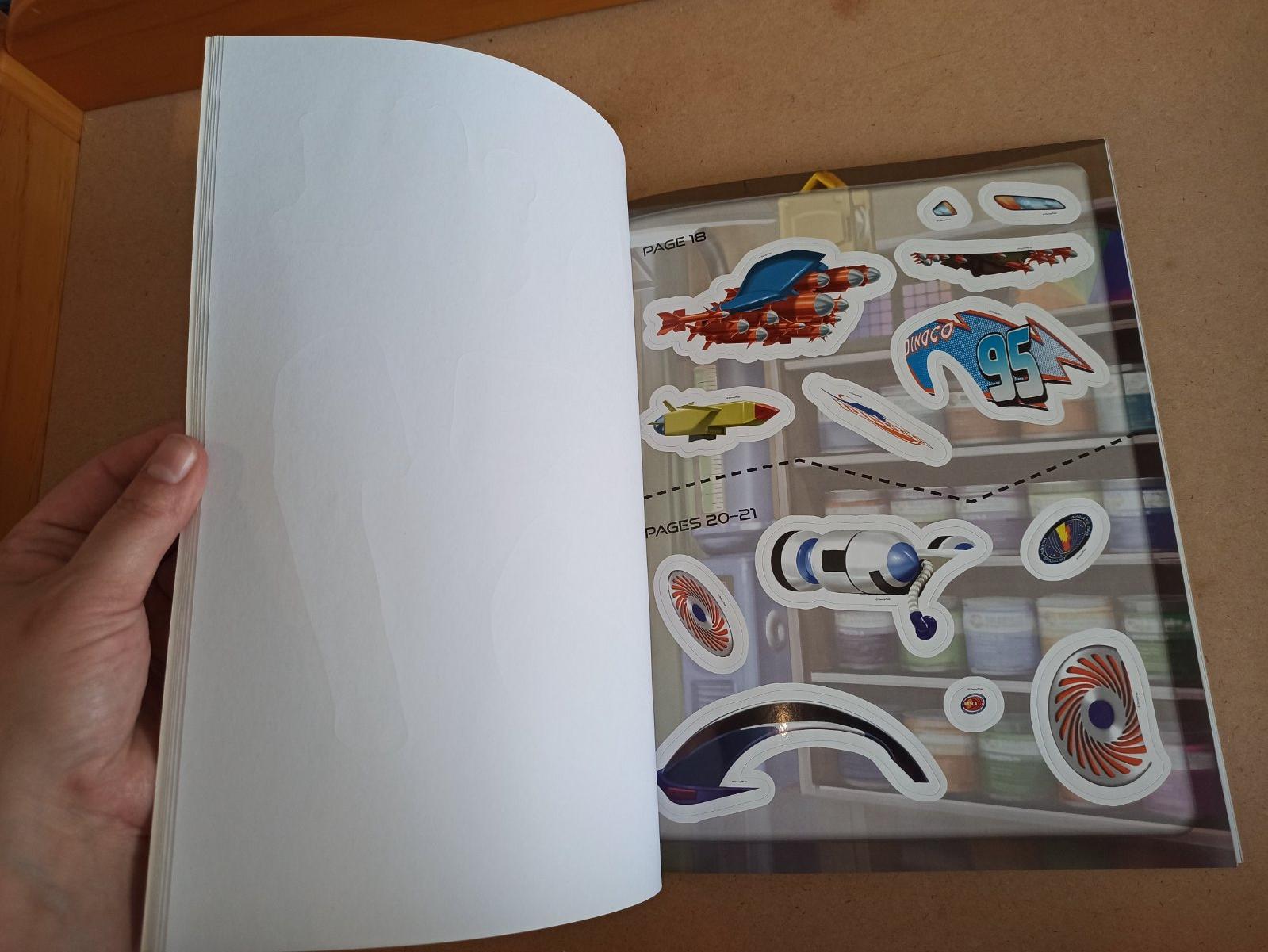 Velkoformatovy pracovny zosit s pribehom a nalepkami.