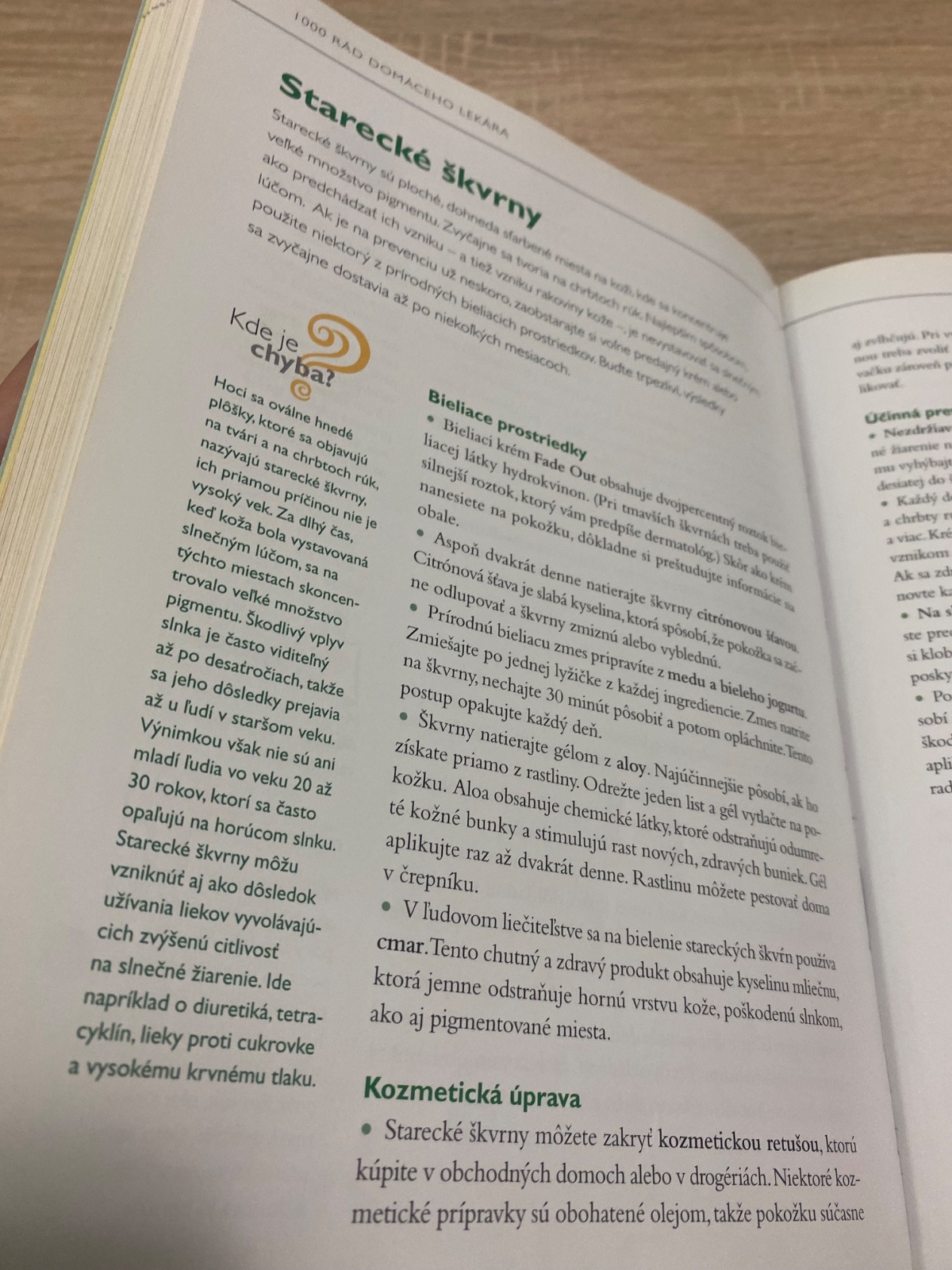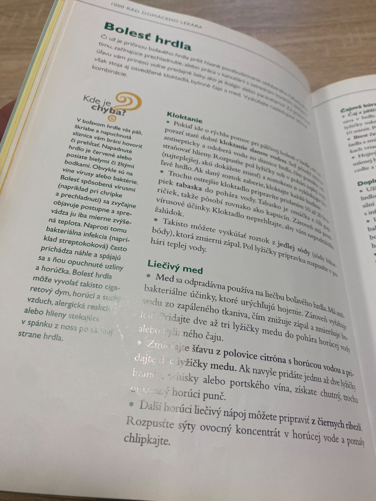 Pozrite sa do knihy 1000 RÁD DOMÁCEHO LEKÁRA – a potom nakuknite do ľadničky, prezrite skriňu v kuchyni alebo aj priestor pod drezom… Možno sa ani nestačíte čudovať, koľko prostriedkov pre liečbu bežných ochorení a poranení doma máte!
