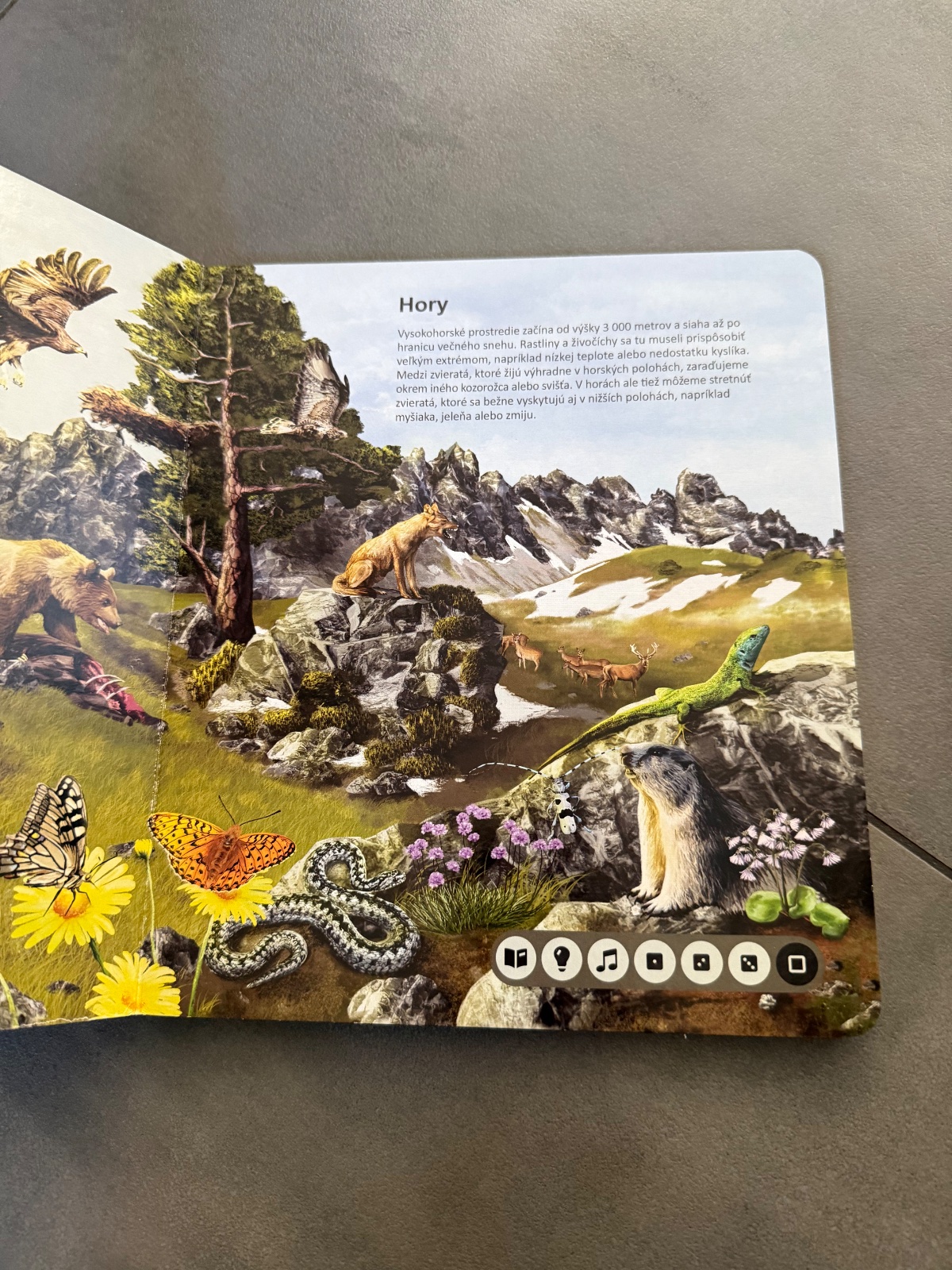 Kniha vás tematicky prevedie ôsmymi rôznymi prostrediami z našej planéty ako je les, savana, púšť, more a ďalšie. Na každej strane sa dozviete, aké zvieratá v danom prostredí žijú, ako sa volajú, aké zvuky vydávajú a čím sú zaujímavé. Svoje znalosti si potom môžete overiť pomocou zábavných kvízov, ktoré sú vždy rozdelené do troch kategórií: nájdi zviera podľa názvu, nájdi zviera podľa zvuku, nájdi zviera podľa zaujímavosti.