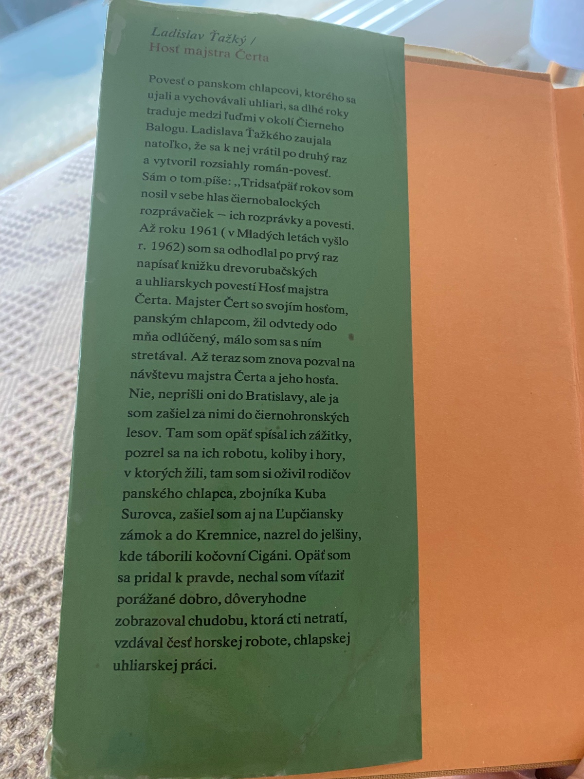Povesť o panskom chlapcovi, ktorého sa ujali a vychovávali uhliari, sa dlhé roky traduje medzi ľuďmi v okolí Čierneho Balogu. Ladislava Ťažkého zaujala natoľko, že sa k nej vrátil po druhý raz a vytvoril rozsiahly román-povesť. Sám o tom píše: „Tridsaťpäť rokov som nosil v sebe hlas čiernobalockých rozprávačiek - ich rozprávky a povesti. Až roku 1961 (v Mladých letách vyšlo r. 1962) som sa odhodlal po prvý raz napísať knižku drevorubačských a uhliarskych povestí Hosť majstra Čerta. Majster Čert so svojím hosťom, panským chlapcom, žil odvtedy odo mňa odlúčený, málo som sa s ním stretával. Až teraz som znova pozval na návštevu majstra Čerta a jeho hosťa. Nie, neprišli oni do Bratislavy, ale ja som zašiel za nimi do čiernohronských lesov. Tam som opäť spísal ich zážitky, pozrel sa na ich robotu, koliby i hory, v ktorých žili, tam som si oživil rodičov panského chlapca, zbojníka Kuba Surovca, zašiel som aj na Ľupčiansky zámok a do Kremnice, nazrel do jelšiny, kde táborili kočovní Cigáni. Opäť som sa pridal k pravde, nechal som víťaziť porážané dobro, dôveryhodne zobrazoval chudobu, ktorá cti netratí, vzdával česť horskej robote, chlapskej uhliarskej práci.