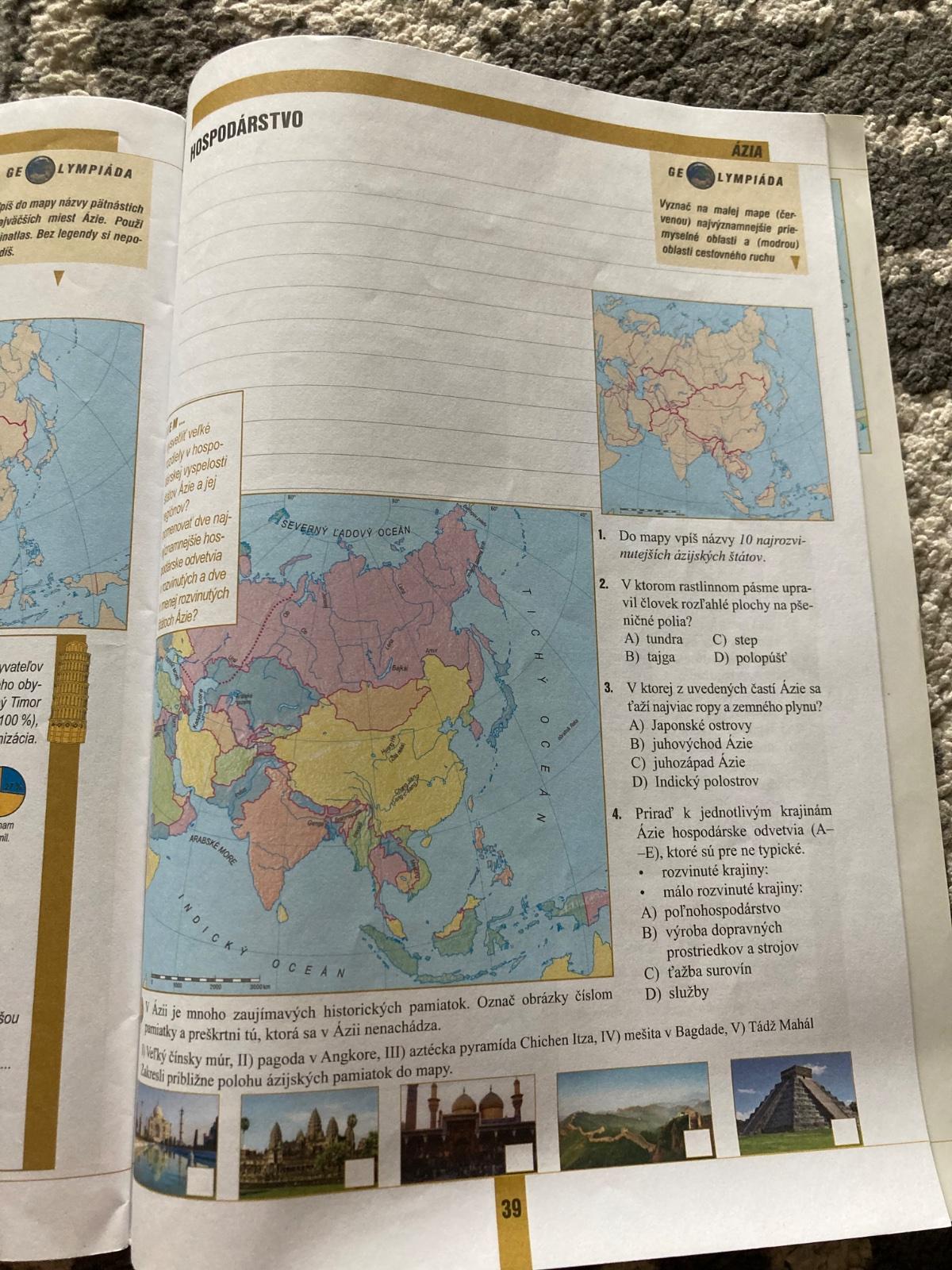 obrázky ilustrujúce základné učivo so zadaniami pre geografické štandardy