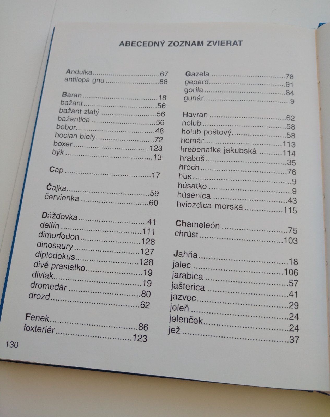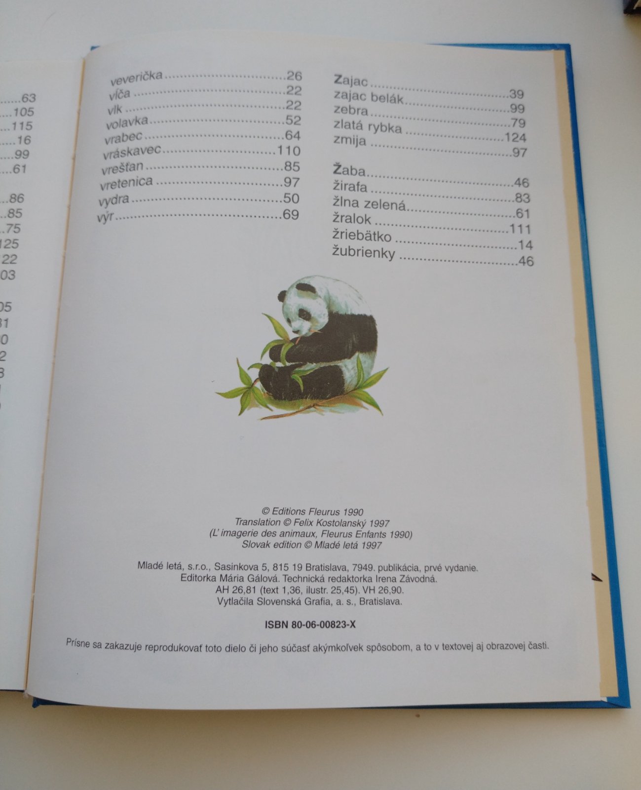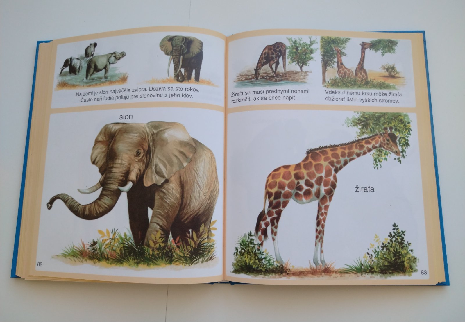 Bohato ilustrovaná encyklopédia, kniha je určená deťom v predškolskom veku a mladším žiakom. Táto obrázková kniha pre malé deti prináša nádherné ilustrácie 174 najznámejších zvierat z celého sveta. Výstižné texty pod obrázkami oboznamuju dieťa s typickými vlastnosťami zvierat a s prostredím, kde žijú.