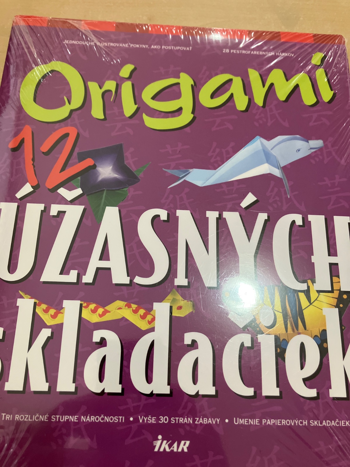 Rôzne origami skladačky , vnutri aj papiere, tri stupne náročnosti