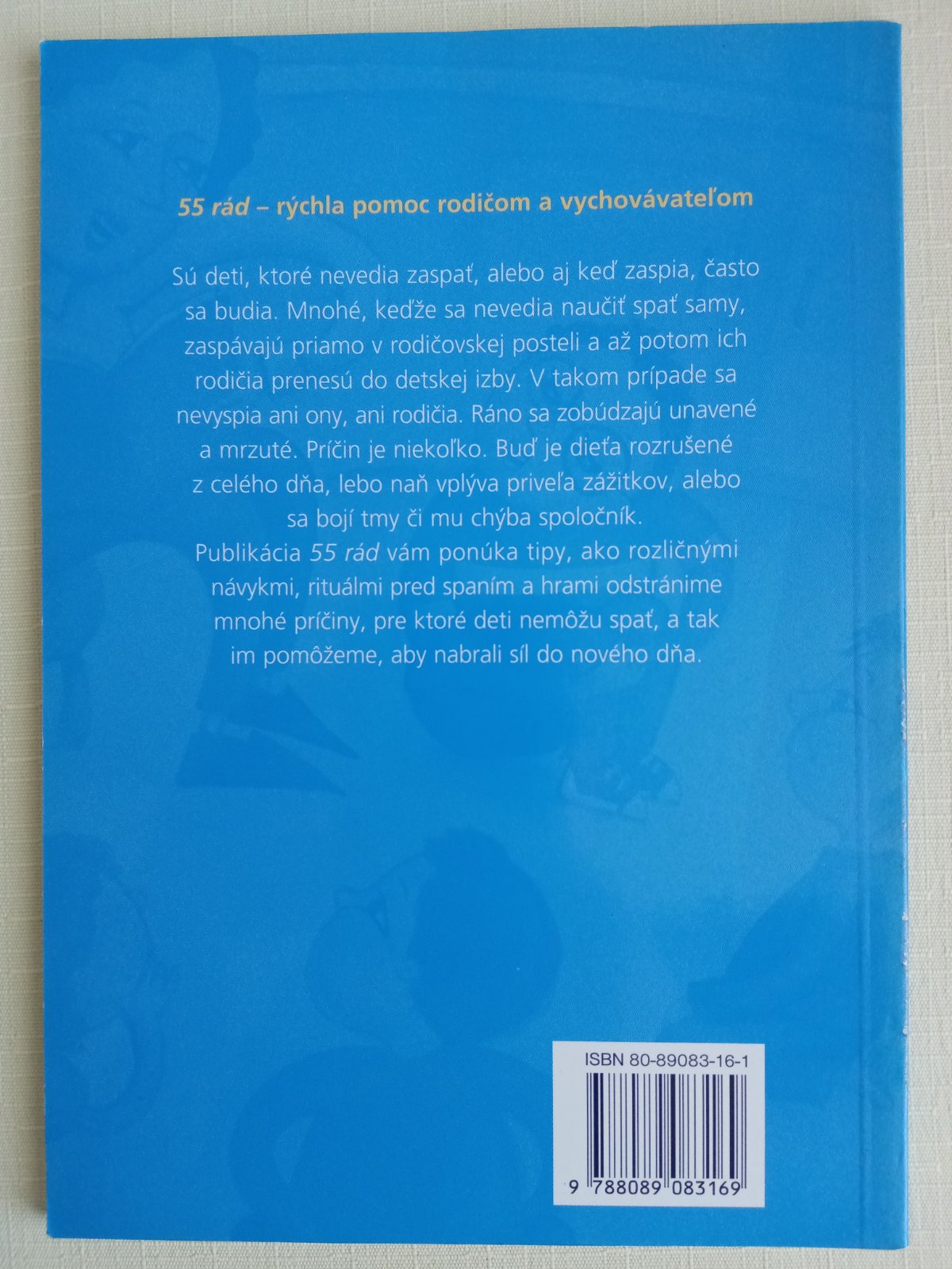Rady rodičom. Publikácia obsahuje 55 rád ako odstrániť mnohé príčiny, pre ktoré dieťa nemôže spať.