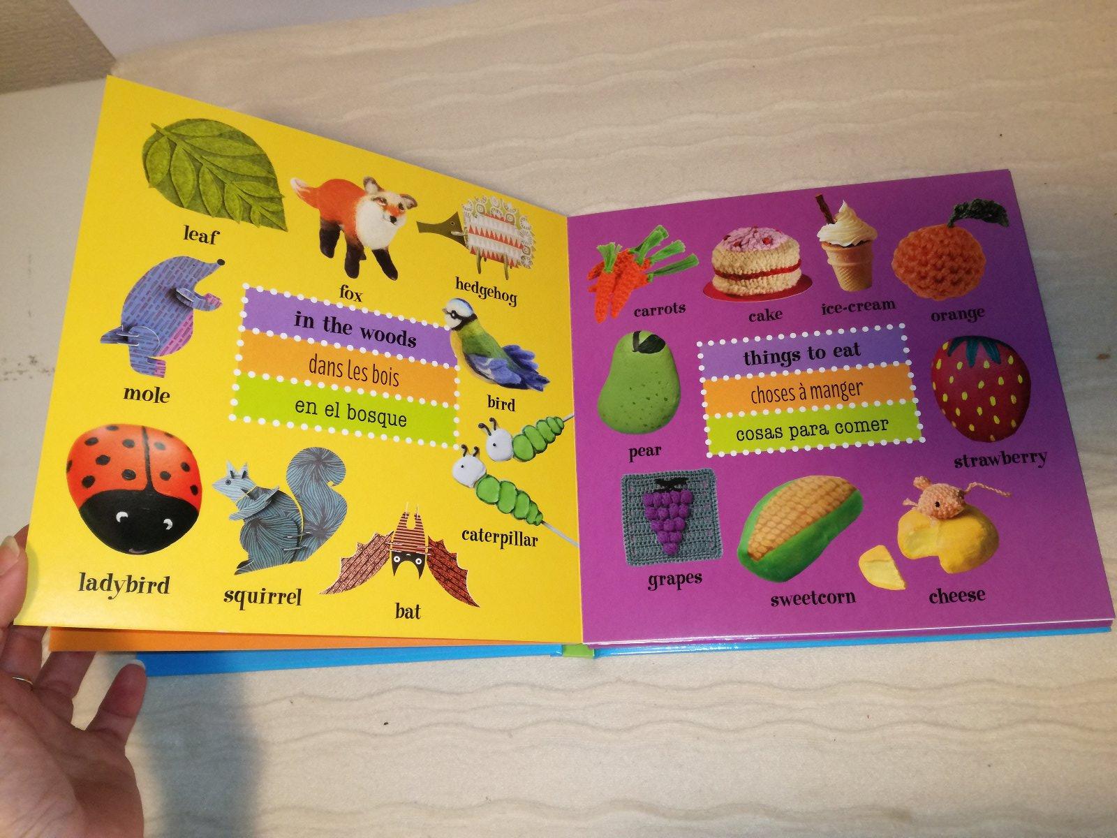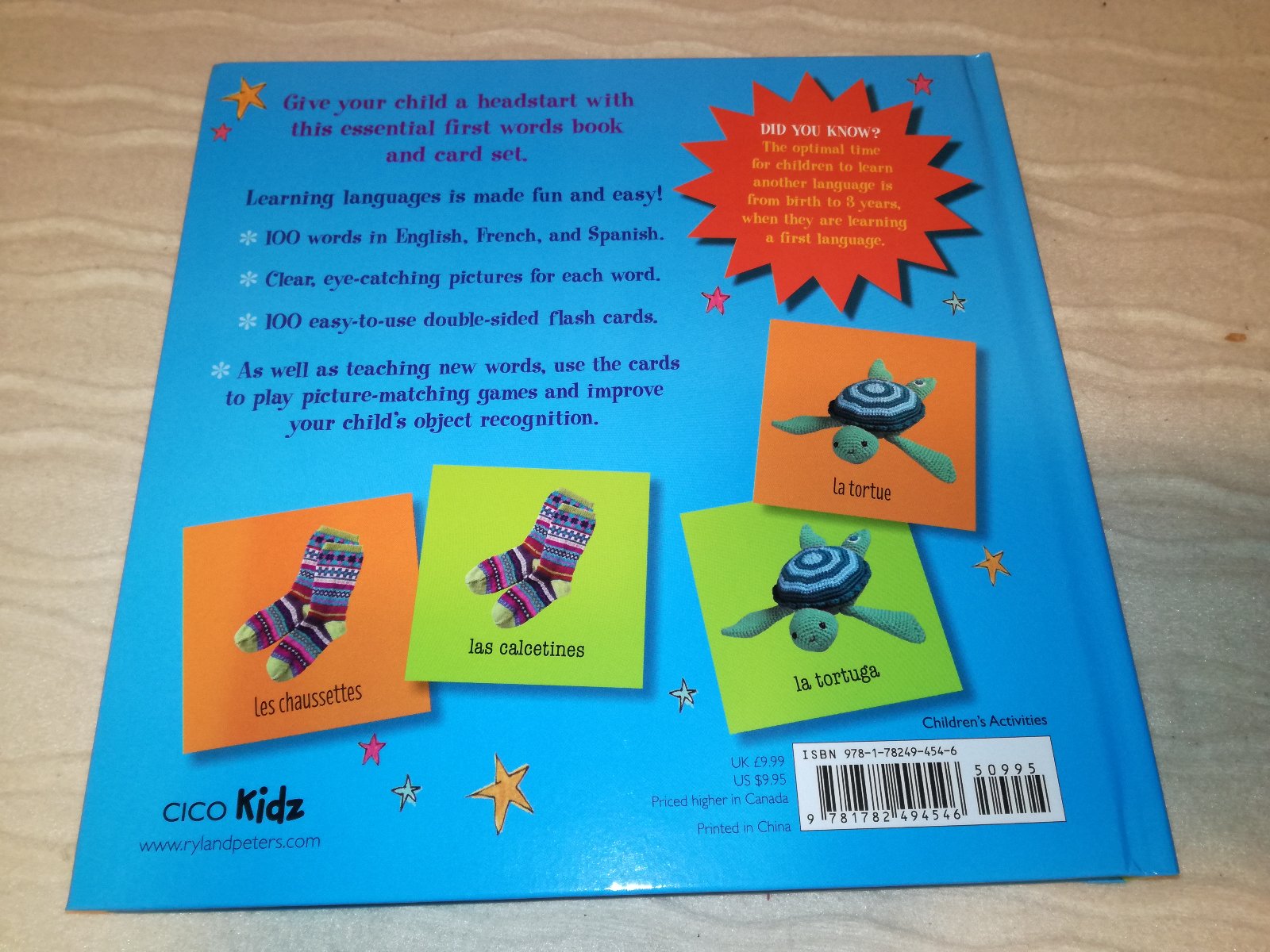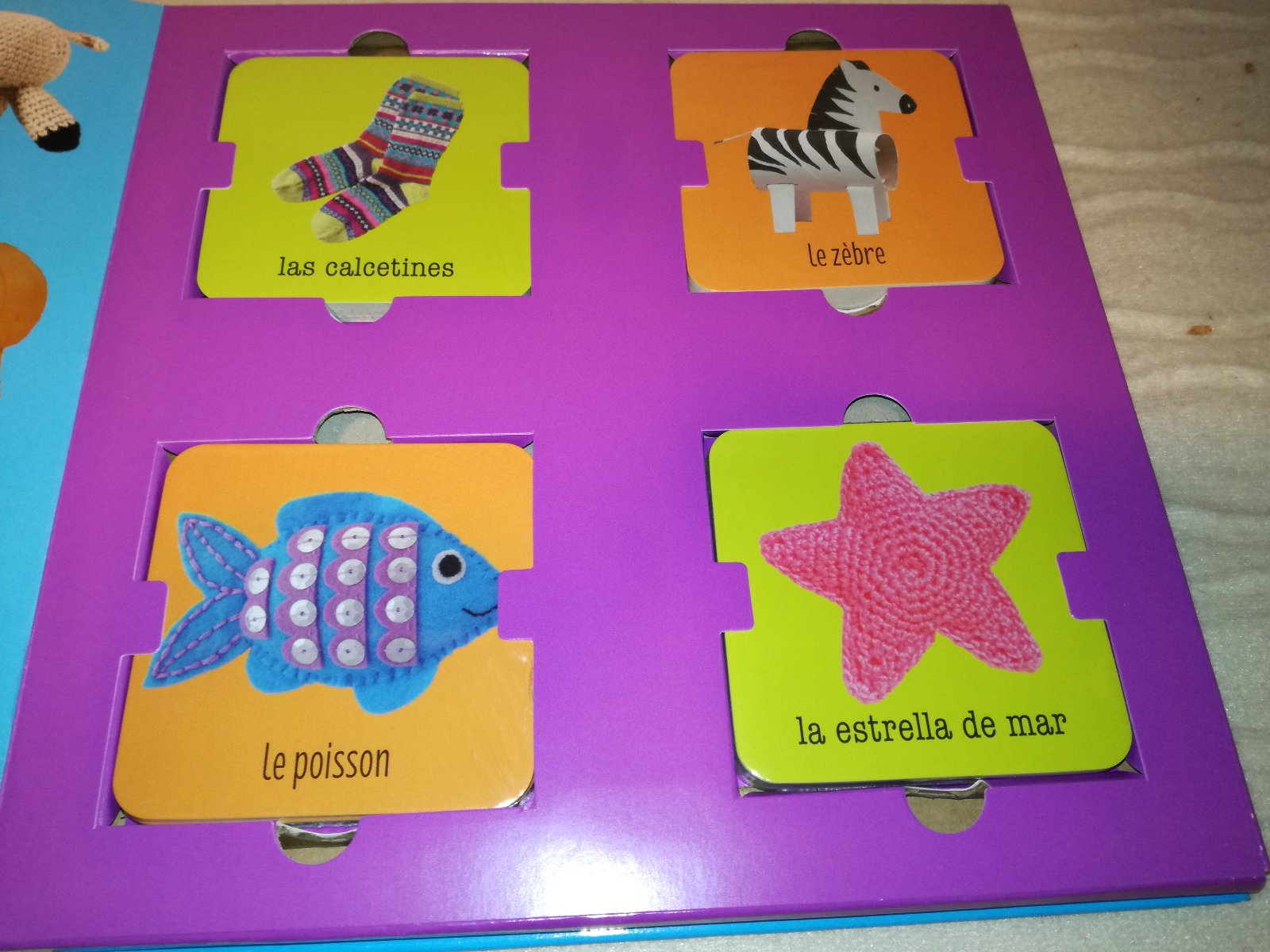 Leporelo so slovickami v anglictine, doplnkove flash cards s francuzskou / spanielskou verziou.