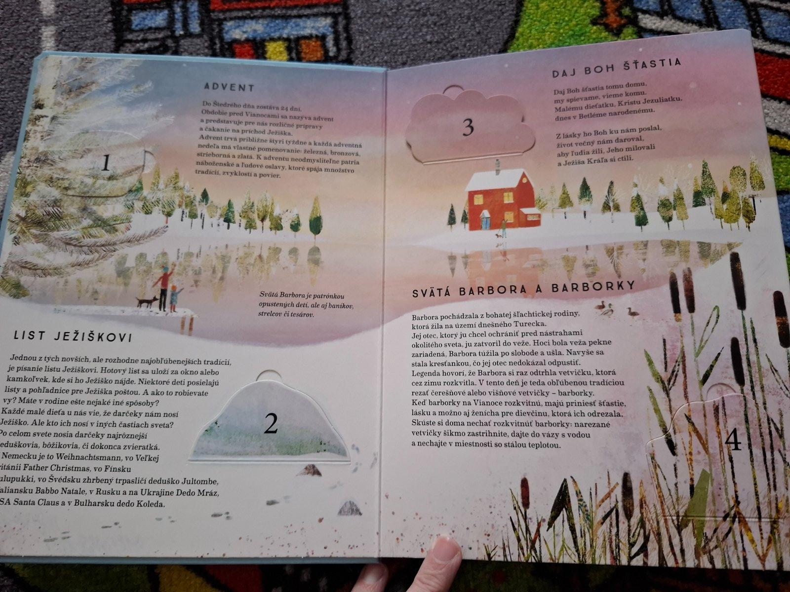 Ponúkam veľmi pekne spracovanú adventnú knižku, hrubšie strany, okienková, rozkladacia, raz prejdená - skoro ako nová - viď fotky.