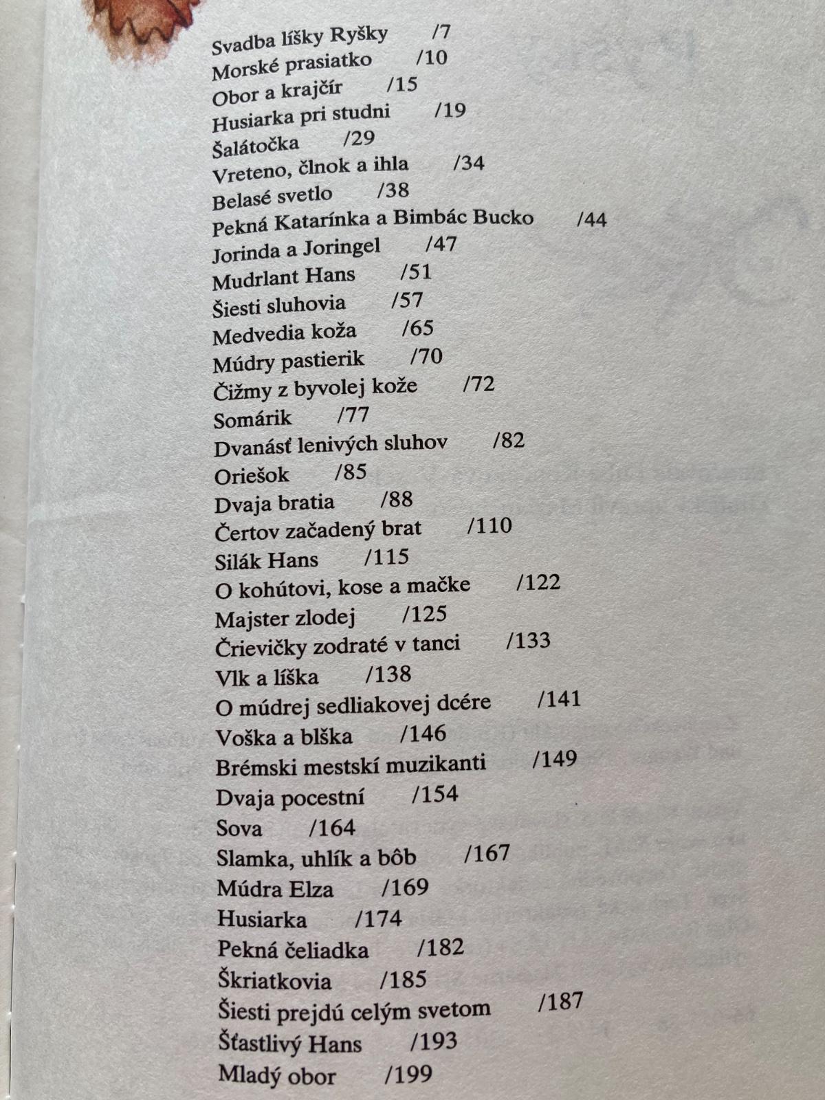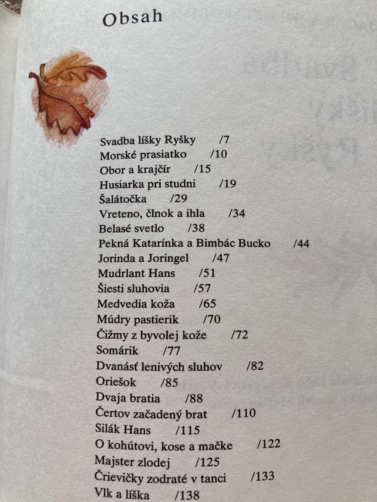 📌Z obsahu: Svadba líšky Ryšky, Morské prasiatko, Obor a krajčír, Husiarka pri studni, Šalátočka, Mudrlant Hans, Medvedia koža, Čižmy z byvolej kože, Oriešok, Čertov začadený brat, Majster zlodej, O múdrej sedliackej dcére, Husiarka, Škriatkovia a ďalšie.