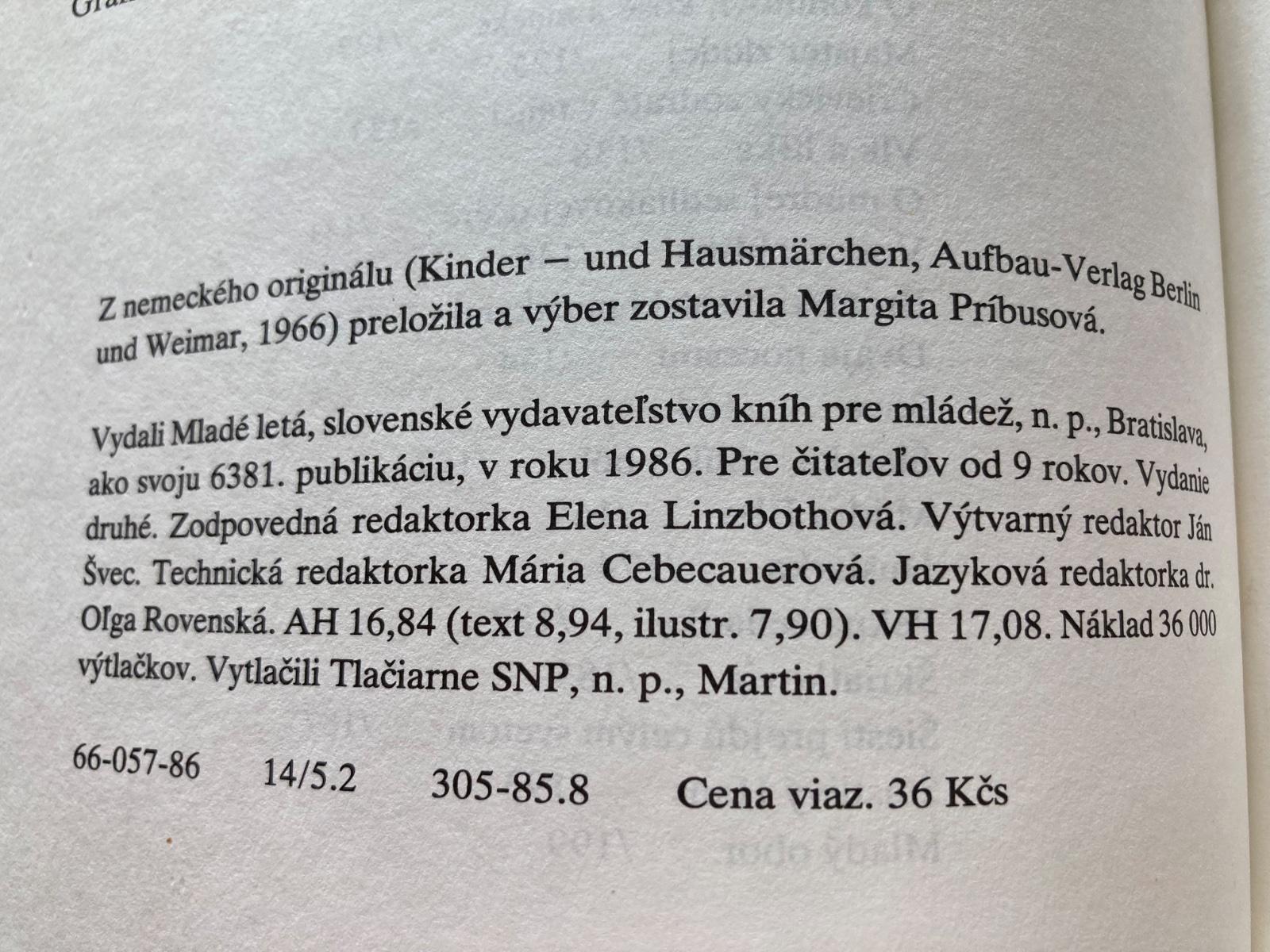 📌Kniha obsahuje 37 málo známych alebo neznámych rozprávok bratov Grimmovcov, ktorí boli najznámejšími autormi a zberateľmi rozprávok po Ch. Andersenovi. Knihu veselo ilustrovala Ľuba Končeková-Veselá.