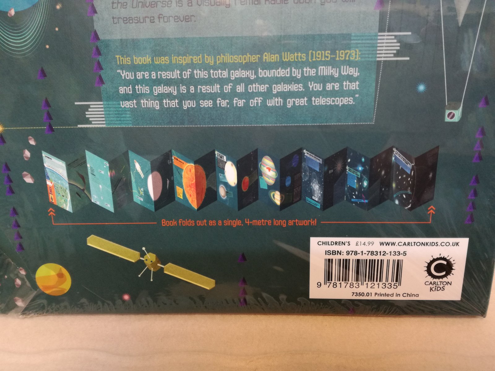Kniha o vesmire s vybalovacim posterom - ten je 4m dlhy a znazornuje vzdialenost Zeme od konca vesmiru, ako ho doteraz pozname.