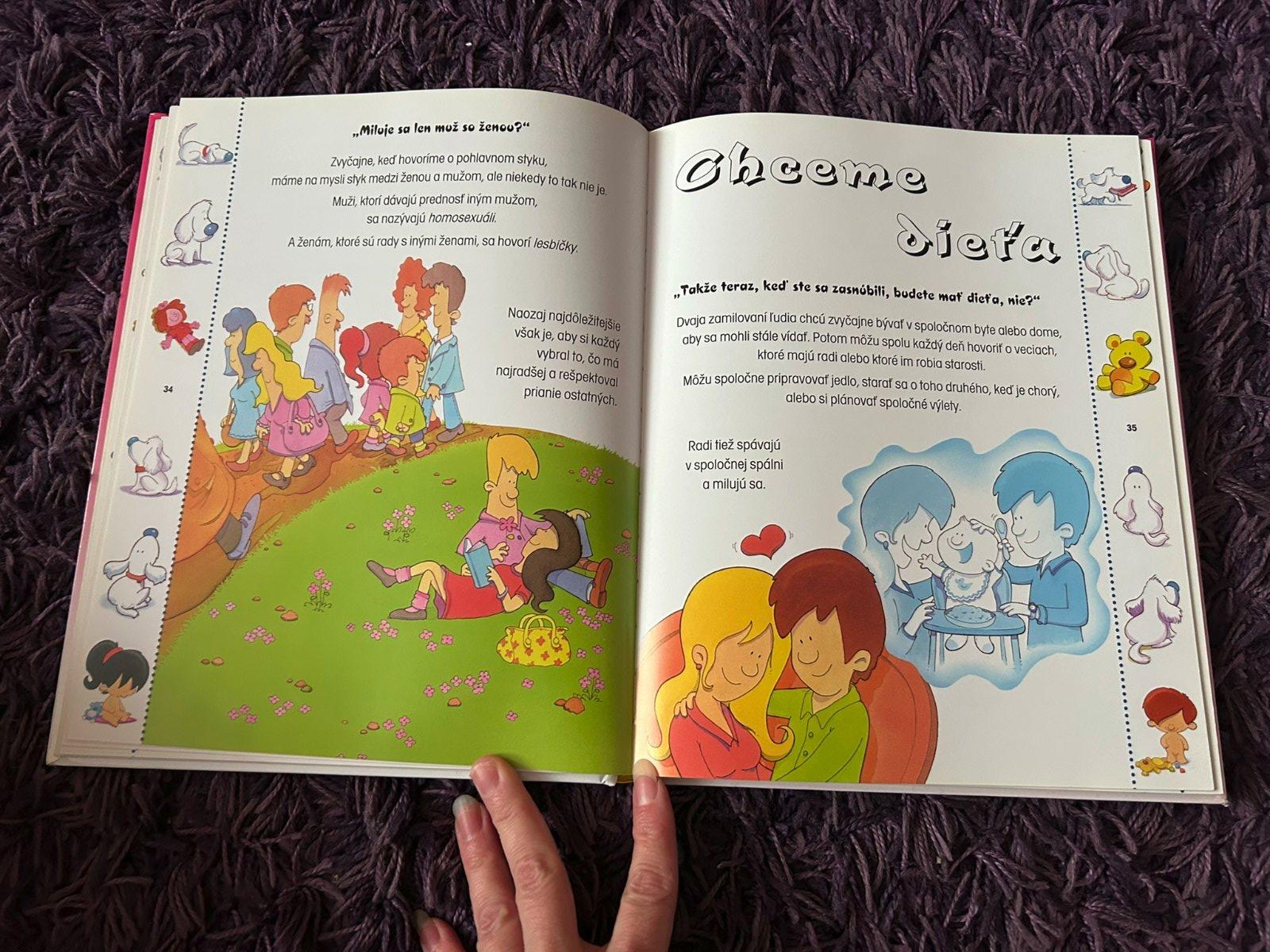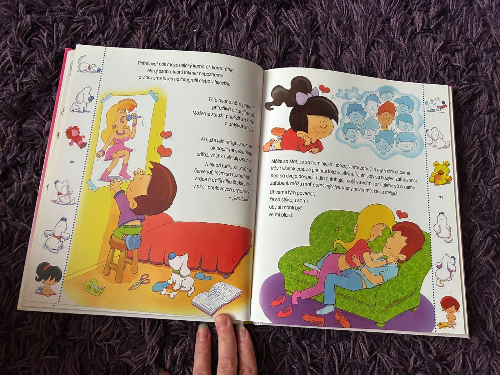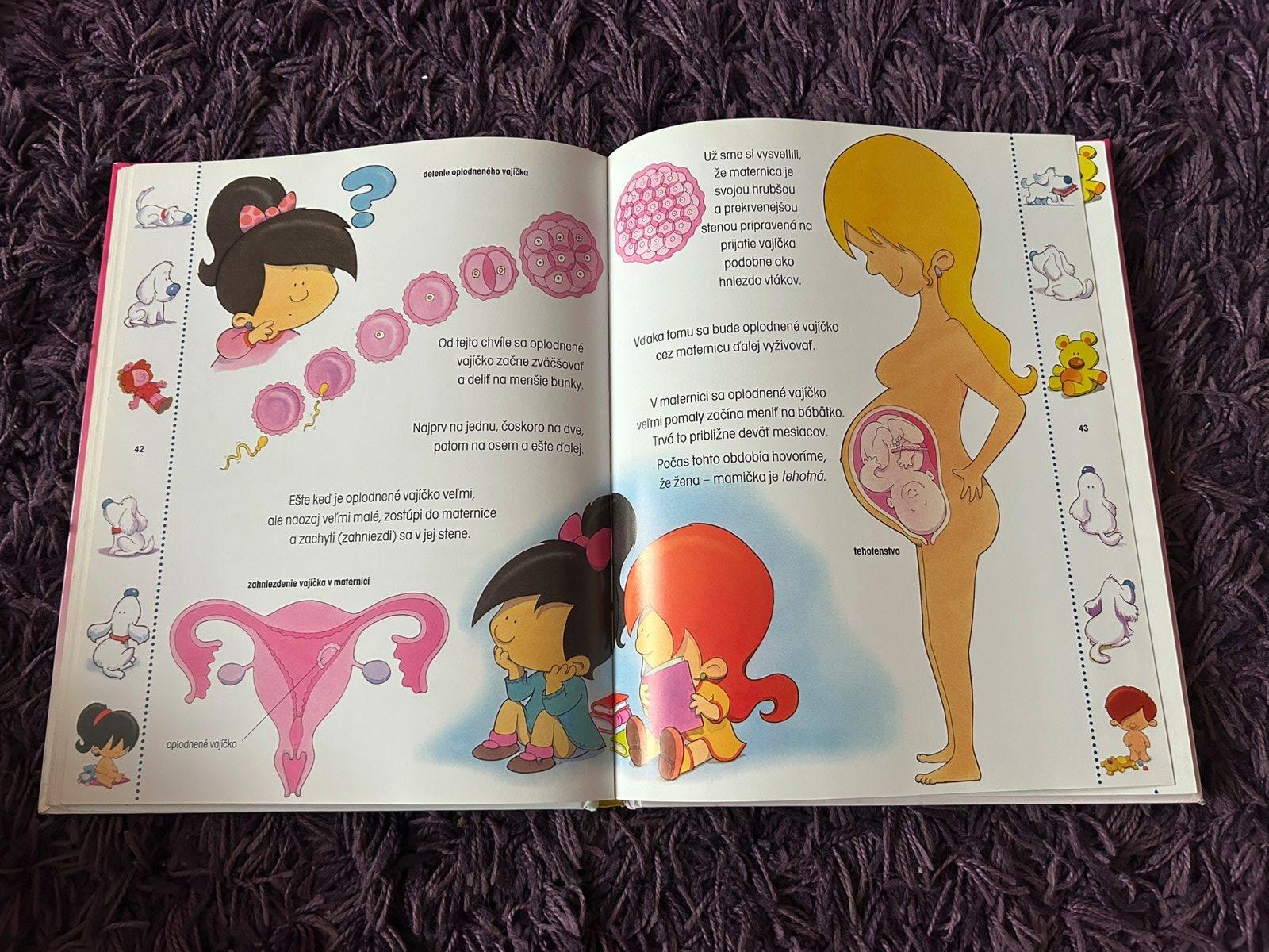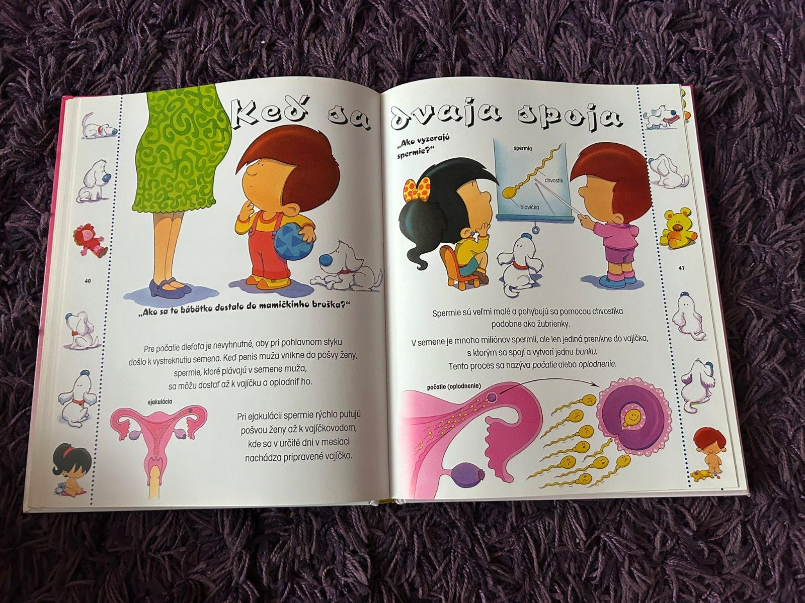 Veľmi pekná knižka, ktorá vďaka zrozumiteľnému textu a vhodným, primeraným ilustráciam poskytne deťom pravdivé informácie o anatomických rozdieloch medzi mužom a ženou, o telesných zmenách počas puberty, o citových a sexuálnych vzťahoch a nakoniec aj o počatí a pôrode. Obsahuje aj slovníček výrazov a ich vysvetlenie.