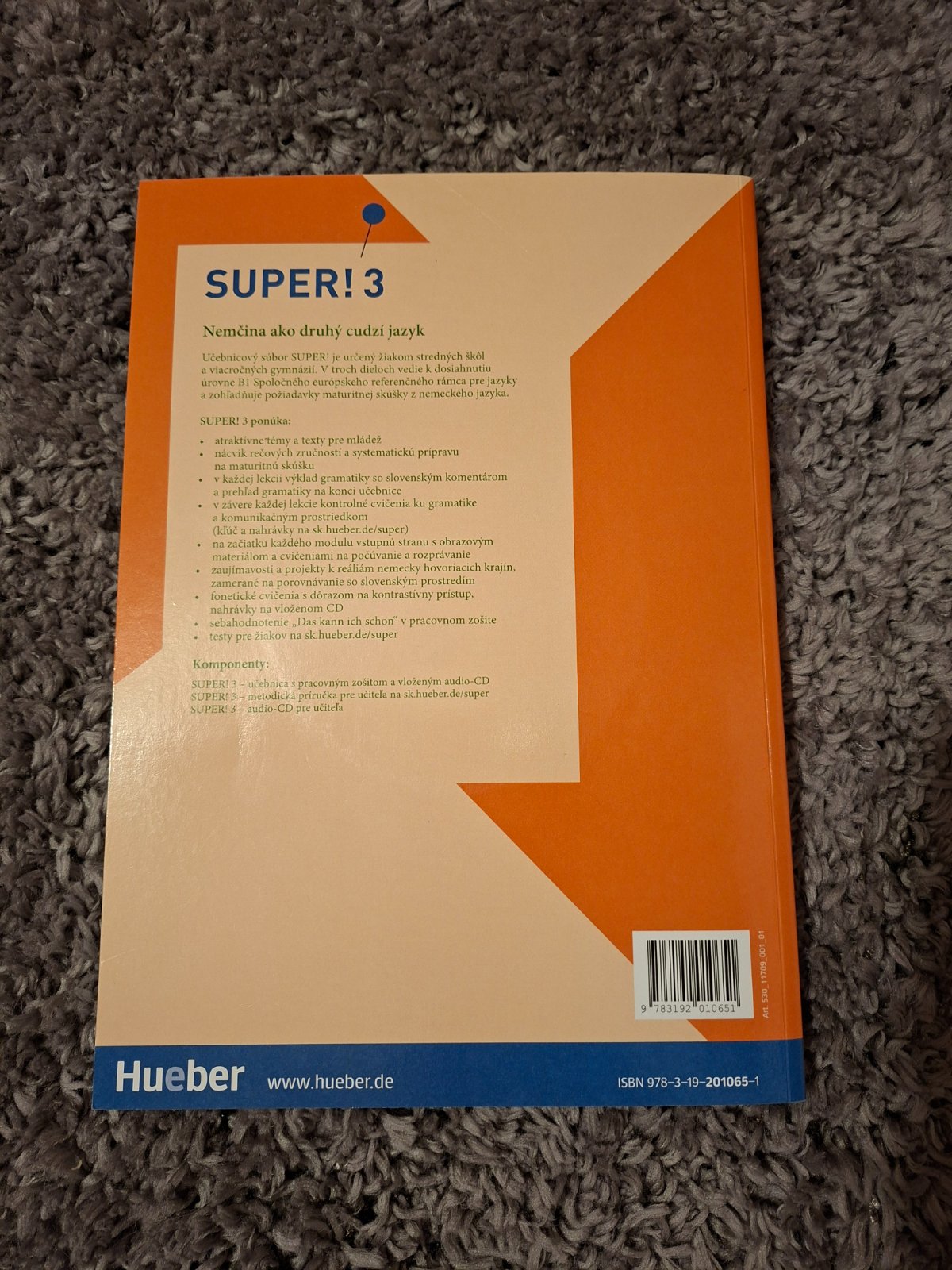 Predám učebnicu nemeckého jazyka pre SŠ. Super!3 B1 od Hueber. Cena na internete sa pohybuje okolo 19€. Používaná, niektoré strany popísané perom (asi 5), párpopisane ceruzkou, super stav. Aj s Cd. Cena 10€