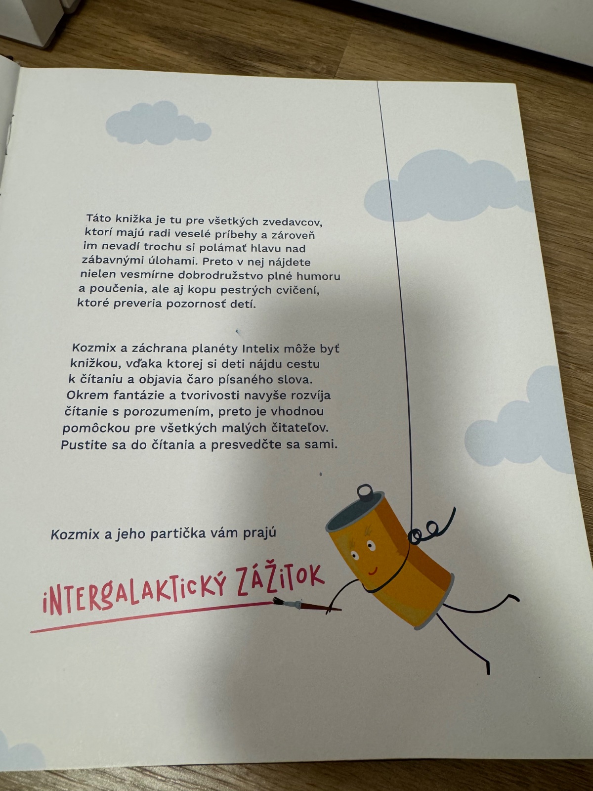 Kozmix, sympatický ufónik, je blízky deťom svojimi šibalstvami a dobrodružstvom, ktoré prežíva so svojimi kamarátmi. Knižka o Kozmixovi okrem fantastických príbehov a krásnych ilustrácií, ponúka ešte ďalší bonus, zaujímavé a zábavné úlohy, ktoré preveria, či deti čítanému alebo počutému textu rozumejú. Detskému čitateľovi poskytnú zábavu, pomôžu lepšie pochopiť text a naučia ho uvažovať o prečítanom texte. Úlohy sú prispôsobené jednotlivým úrovniam porozumenia čítaného textu pre mladší školský vek. Riešenie jednotlivých úloh nájdu deti niekedy priamo v texte, pričom s pomocou dospelých ich zvládnu aj predškoláci. Niektoré úlohy sú náročnejšie, deti o nich potrebujú viac premýšľať a využiť doterajšie vedomosti. A napokon sú pri jednotlivých príbehoch aj také úlohy, ktoré sú zamerané na tvorivosť, fantáziu a šikovnosť. Príbehy o Kozmixovi sú detskému svetu zrozumiteľné svojským humorom, prostredím a vlastnosťami hlavných hrdinov. Pestré úlohy môžu deti riešiť spoločne s kamarátmi, rodičmi či učiteľmi. Spoločné prežívanie príbehov a dobrodružstiev obohatí hodiny čítania v škole a prinesie veľa zmysluplnej zábavy detskému čitateľovi v rodinnom prostredí.