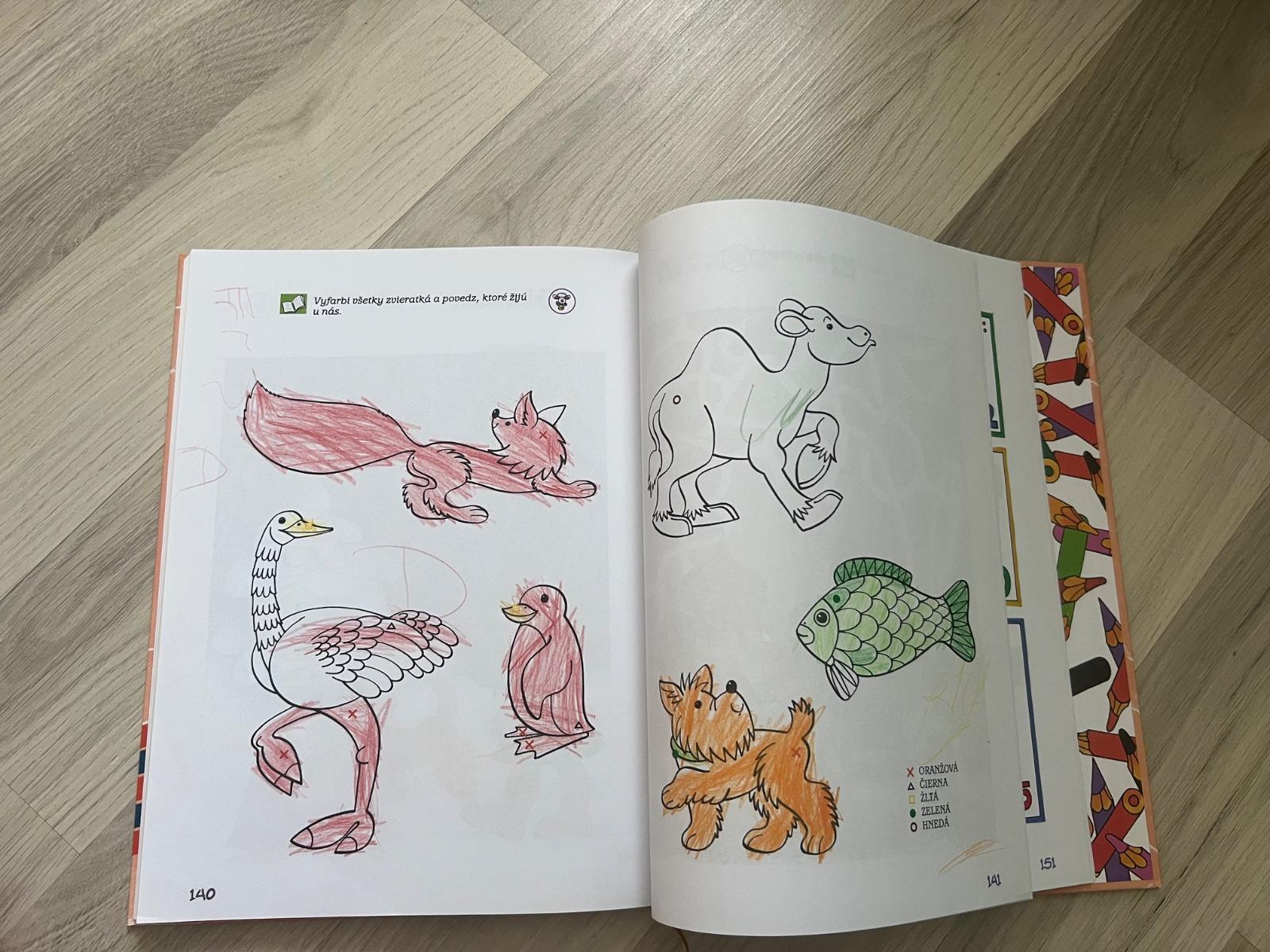 Encyklopédia v dobrom stave. Pár stránok vymalovanych