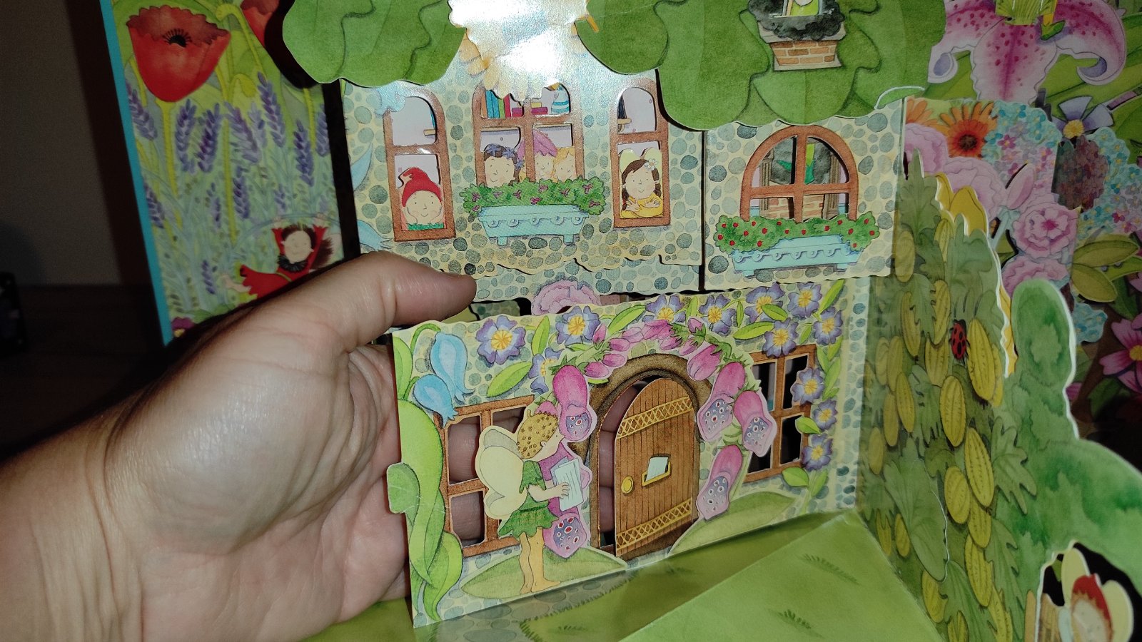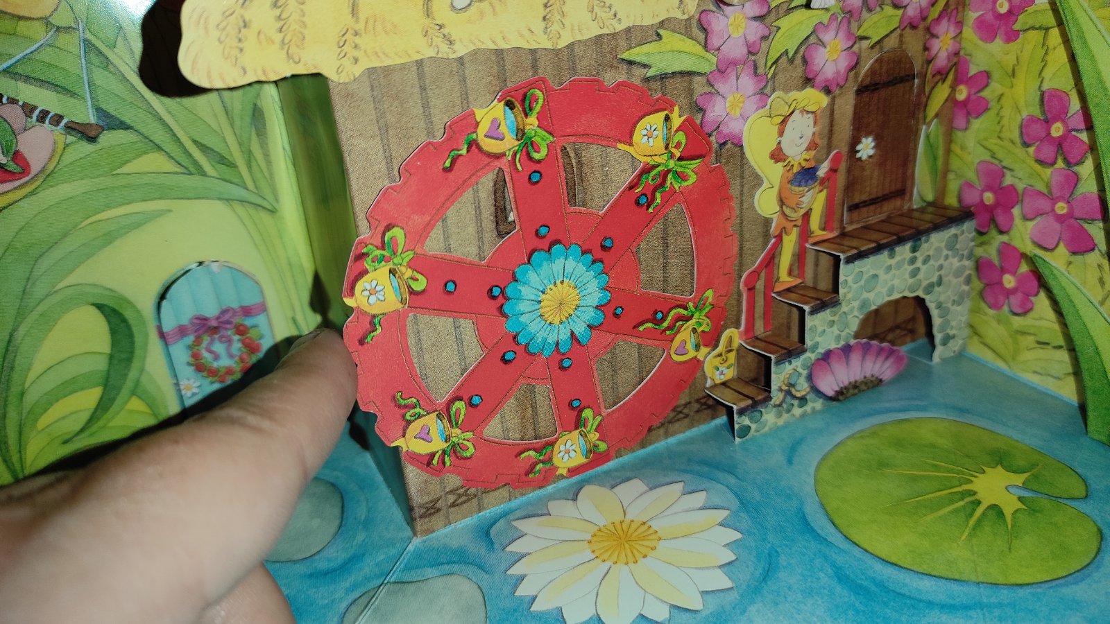 Ponúkam na predaj krásnu knihu. Dcéra sa s ňou vyhrala. V prednej časti je príbeh, následne sa kniha roztvori na 360 stupňov a vznikne obrovský hráči dom s mnohými interaktívnymi prvkami, okná dvere sa dajú pootvarat, kolesá sa dajú točiť, mnohé vyťahovanie s zažívacie prvky,... Nie je už ako nová, vidno hranie, ale stále funkčná krásna, dcéra si na ňu dávala pozor. Pokiaľ má byť kniha celá rozložená, aby dobre držala, treba ju zviazat. Žiaľ jeden kúsok šnúrky chyba, nemusí byť ale zviazaná, stačí obyčajná slisova sponka aby Krajné strany držala pokope, vtedy sa celá vystrie a roztiahne, nemá tendenciu sa zavriet. Určite poteší každé dievcatko. Kupované v IE, u nás sa nedá kupit. Ponúkam za cenu 6 eur.
